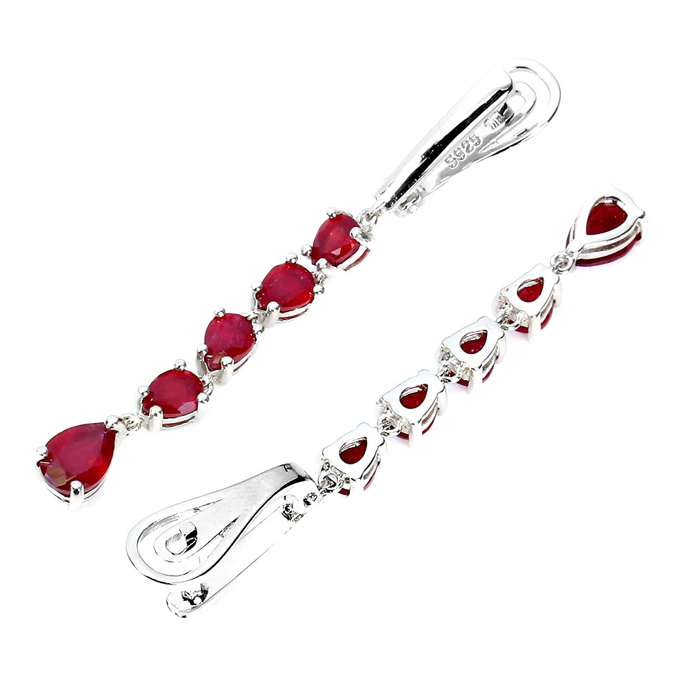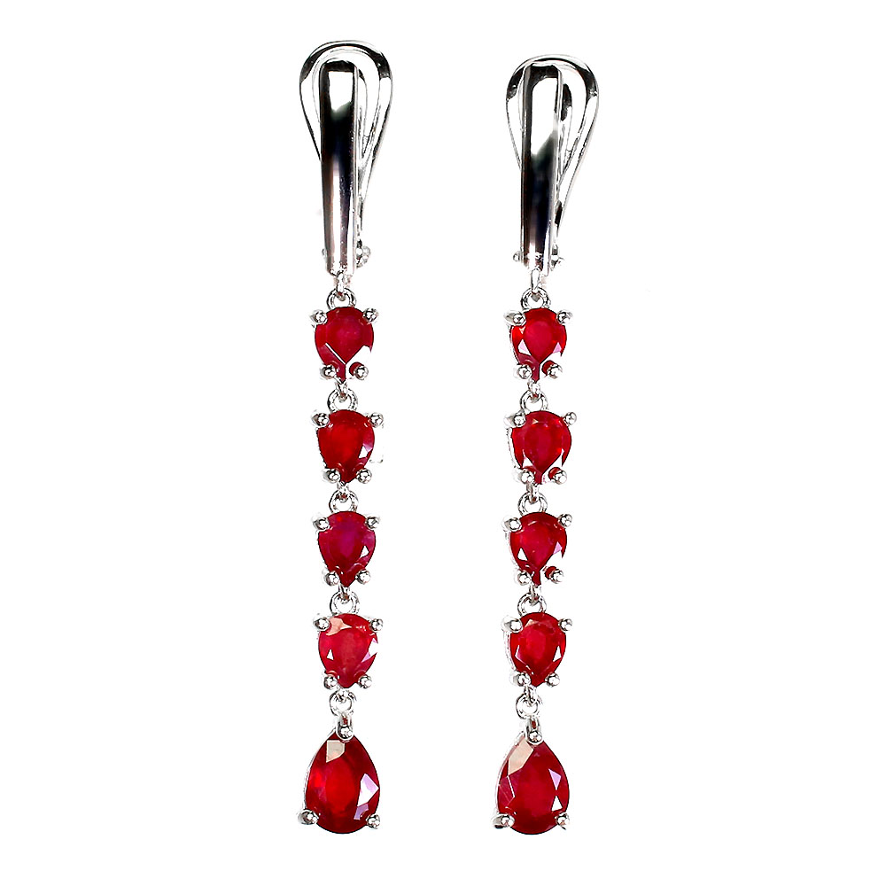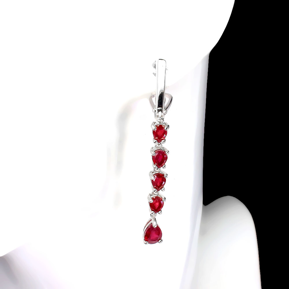 Heated Pear Red Ruby 7x5mm 14K White Gold Plate 925 Sterling Silver Earrings
