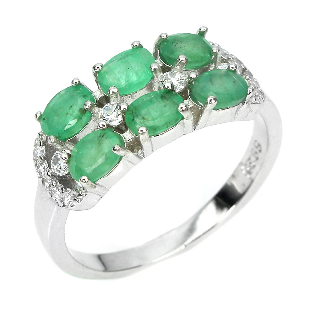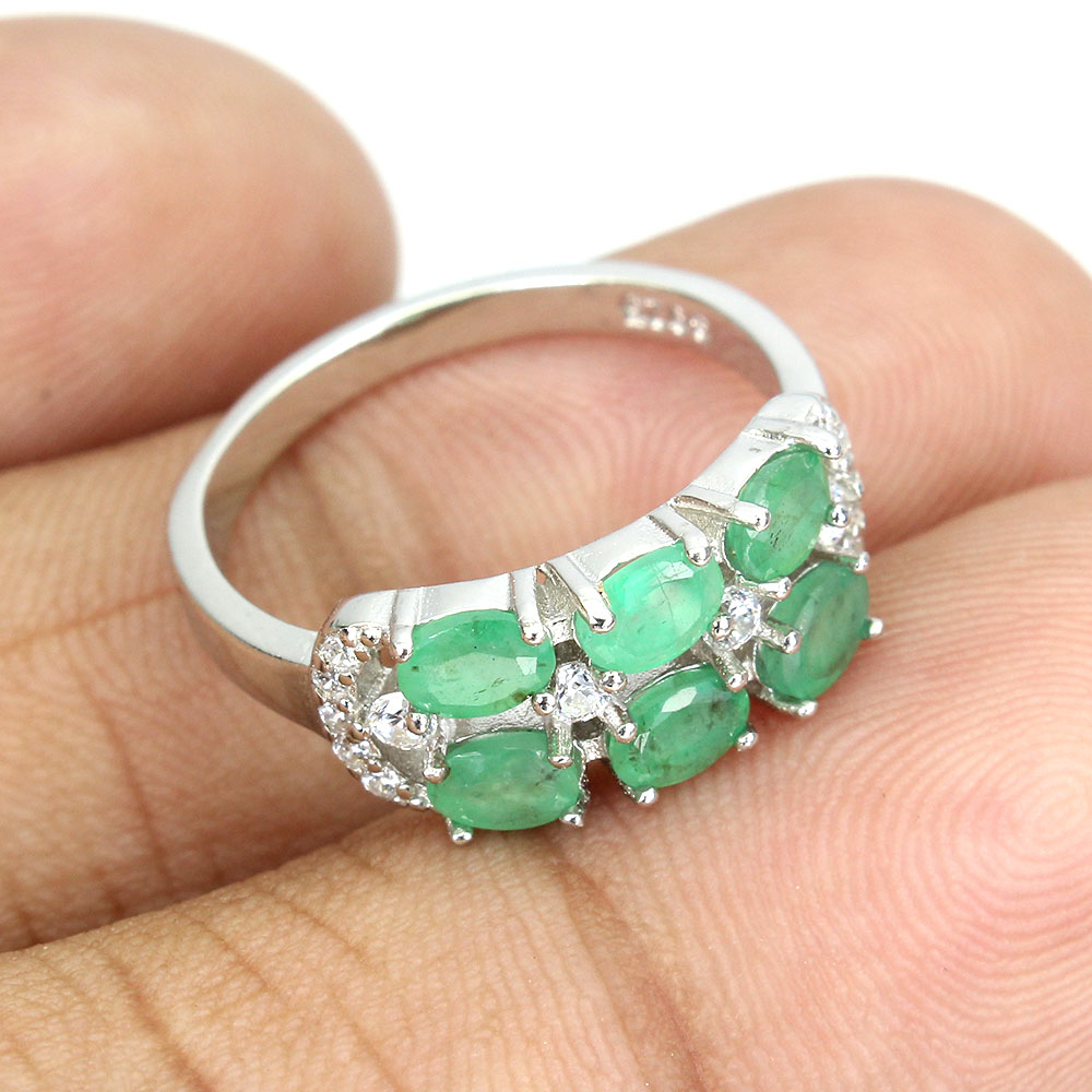 Unheated Oval Green Emerald 4x3mm Simulated Cz 925 Sterling Silver Ring Size 6