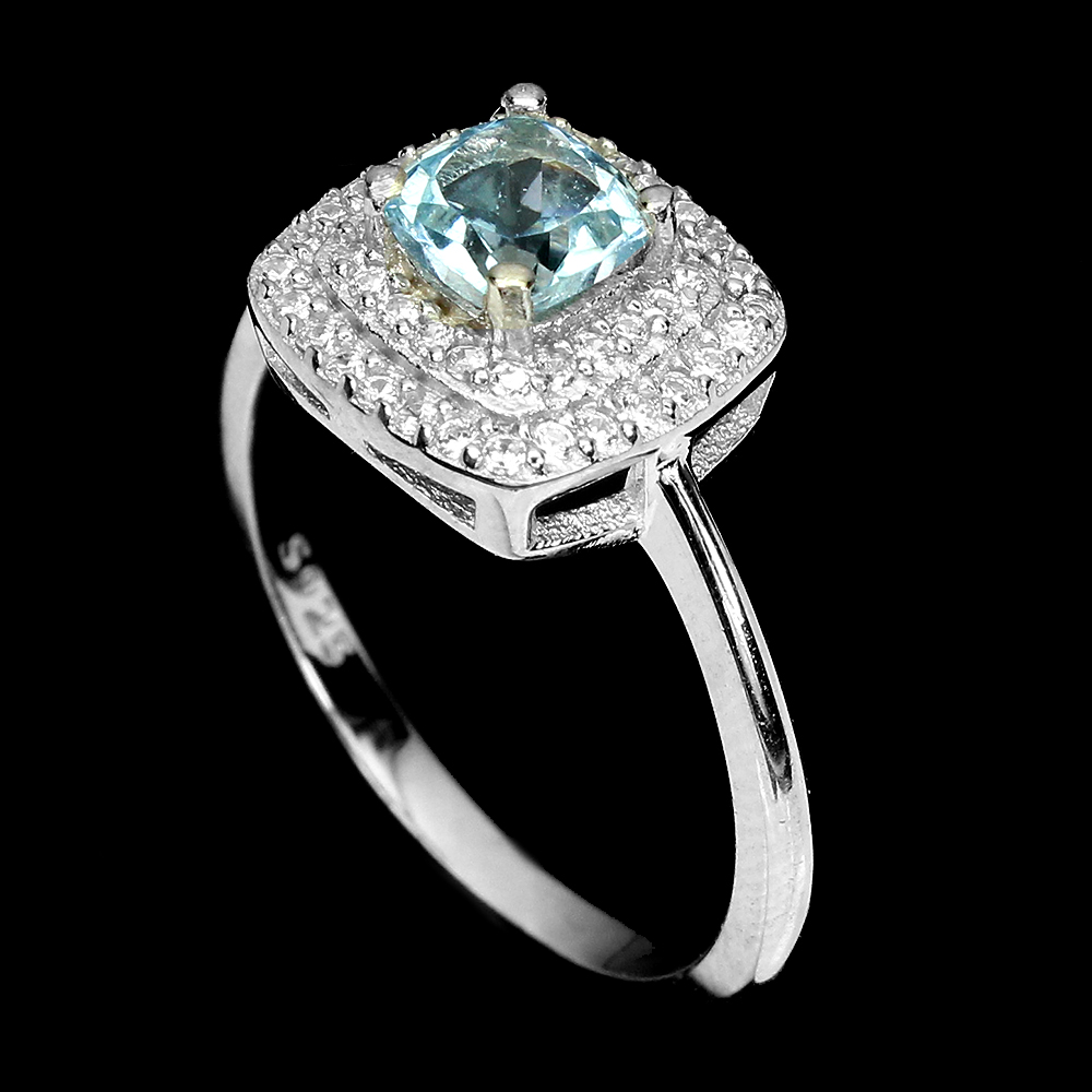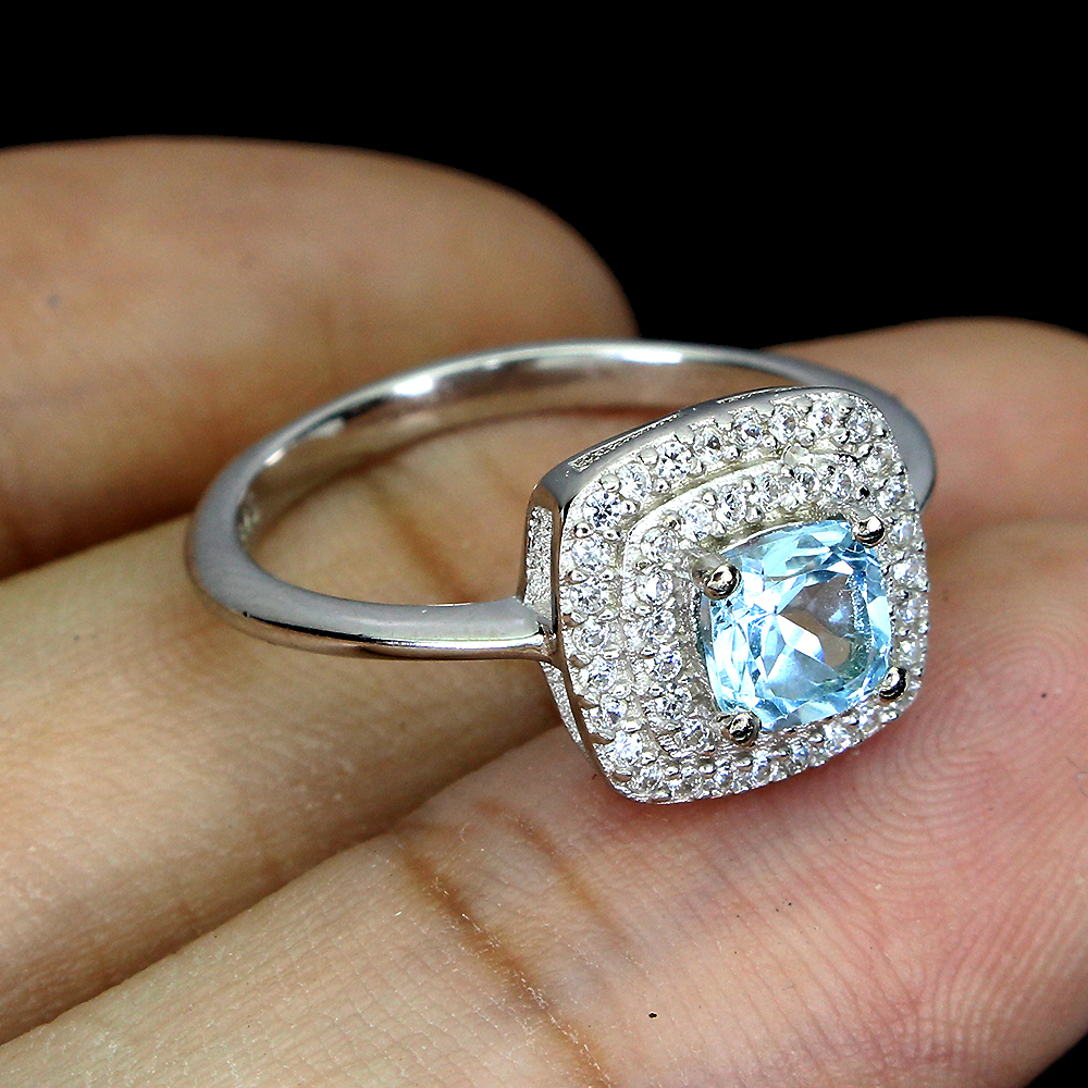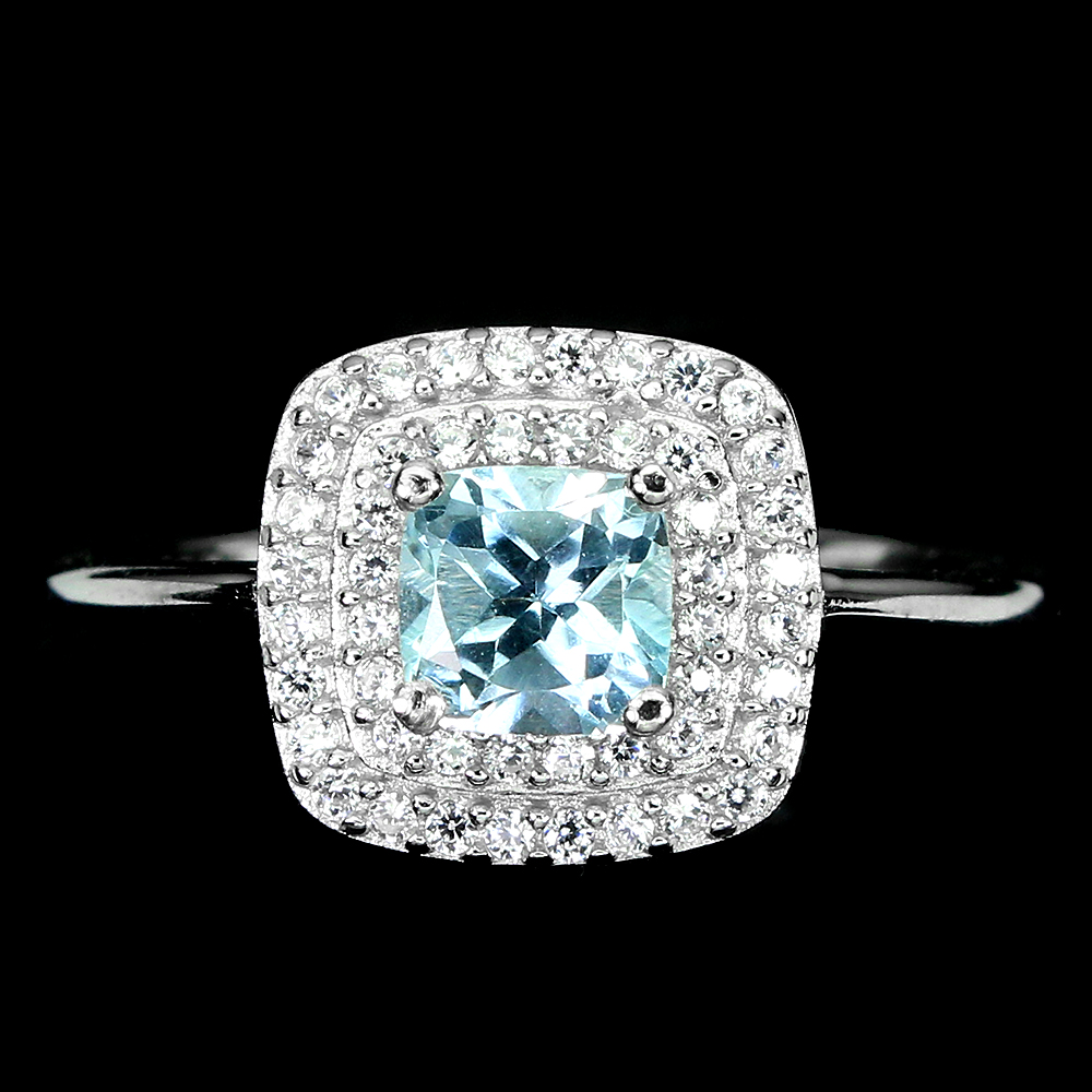Irradiated Cushion Sky Blue Topaz 5mm Simulated Cz 925 Sterling Silver Ring 8