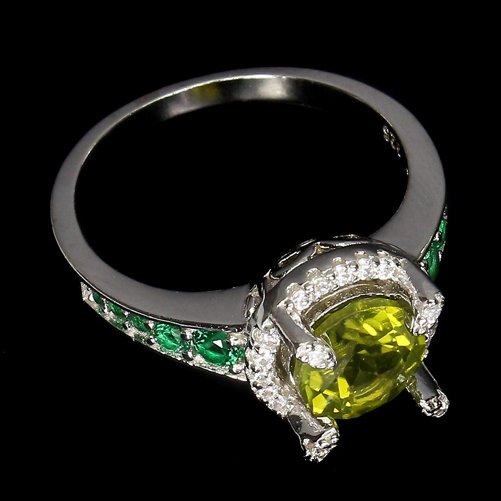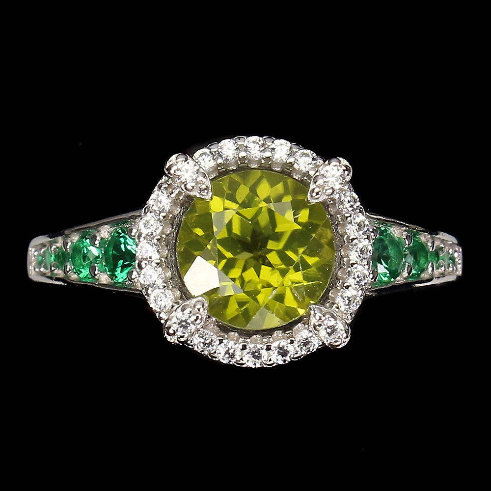 Unheated Round Green Peridot 7mm Simulated Cz 925 Sterling Silver Ring Size 7