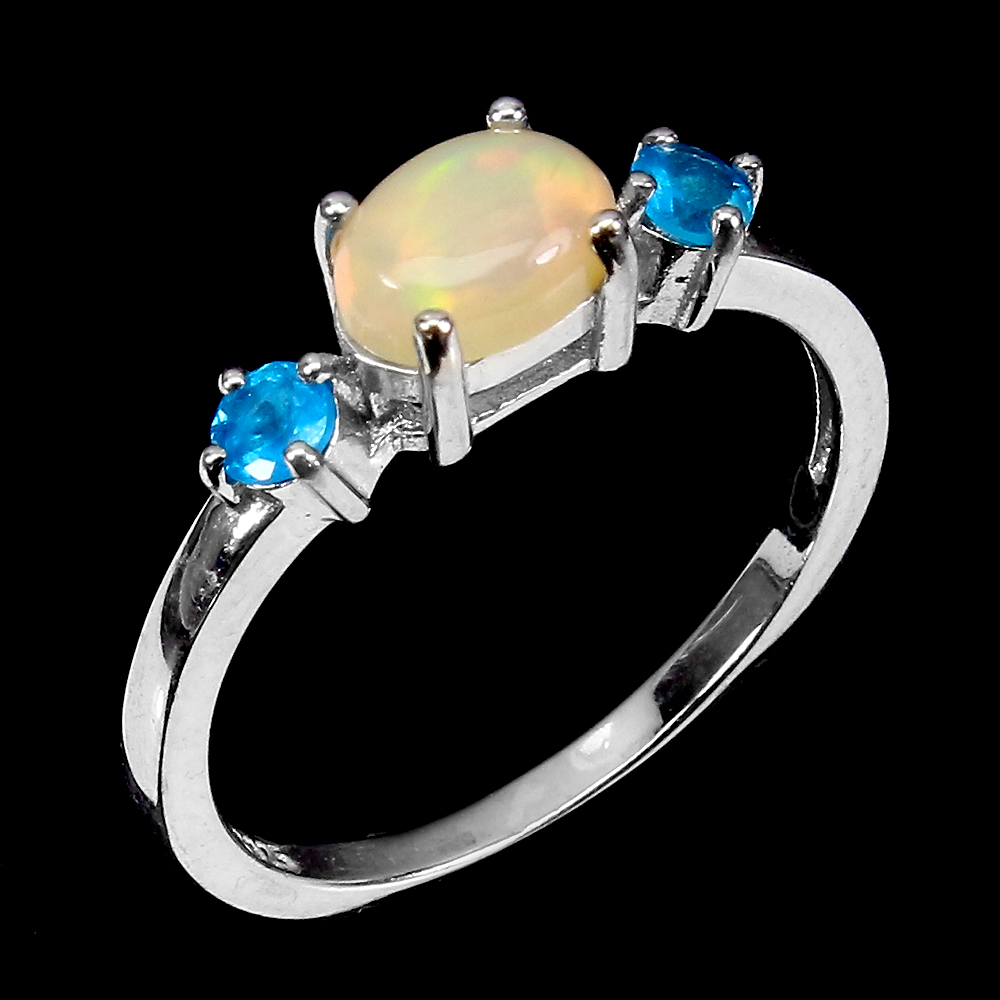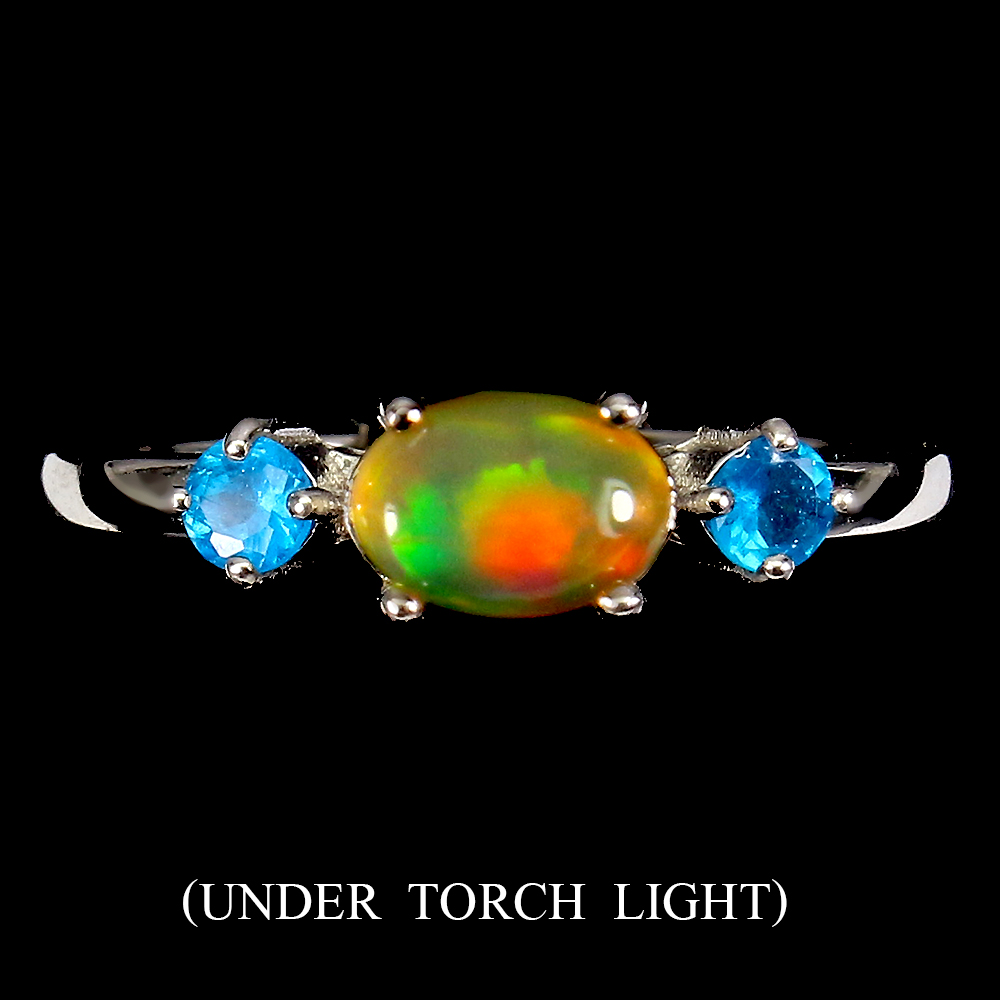 Unheated Oval Fire Opal Rainbow 7x5mm Apatite 925 Sterling Silver Ring