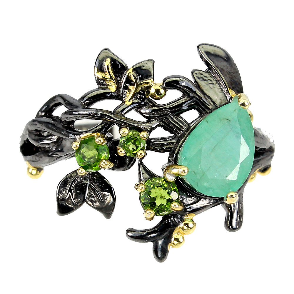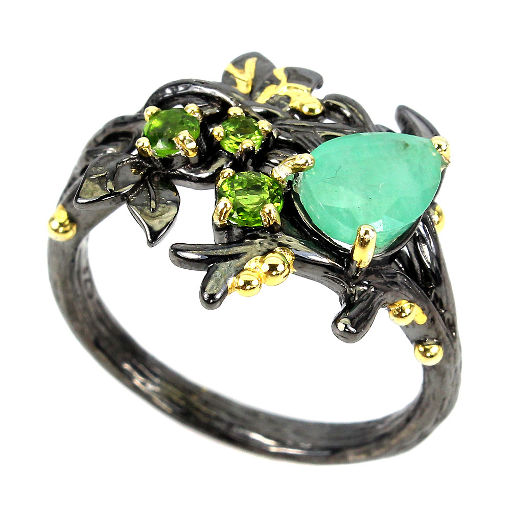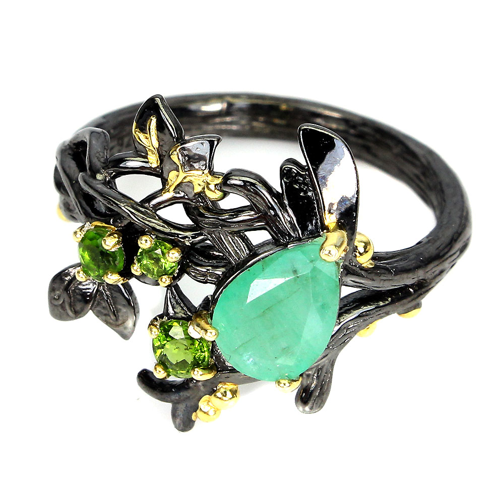 Unheated Pear Green Emerald 8x6mm Chrome Diopside 925 Sterling Silver Ring Sz 7