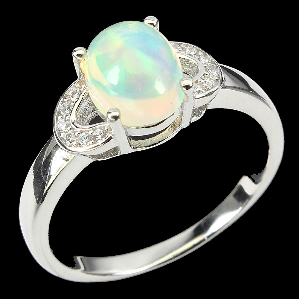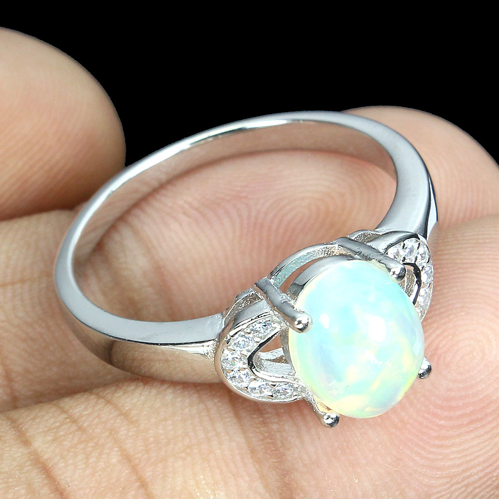Unheated Oval Fire Opal 9x7mm Simulated Cz 925 Sterling Silver Ring Size 8