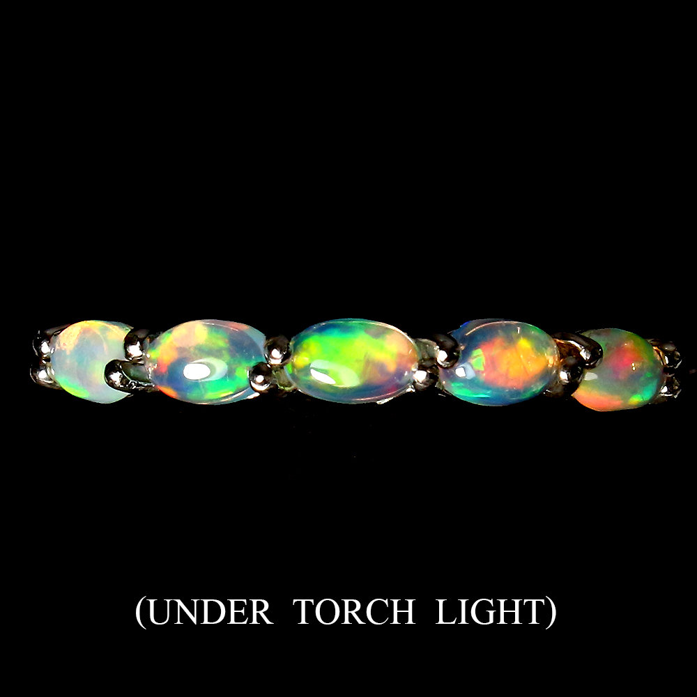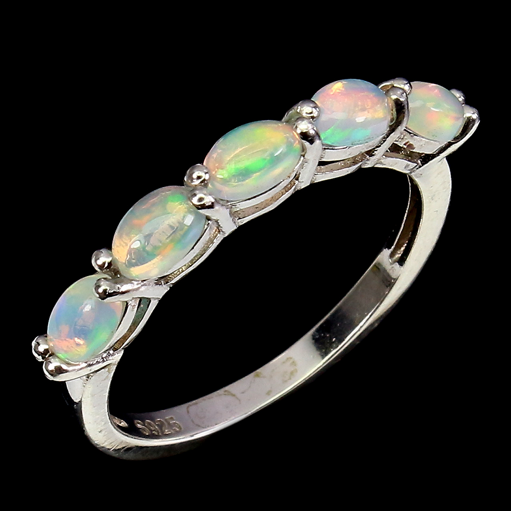 Unheated Oval Fire Opal Rainbow Full Fash 5x3mm 925 Sterling Silver Ring Size 7