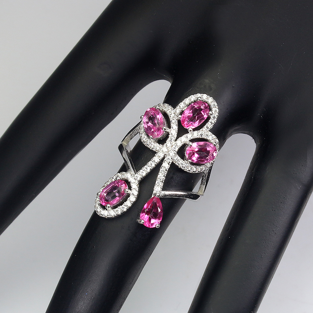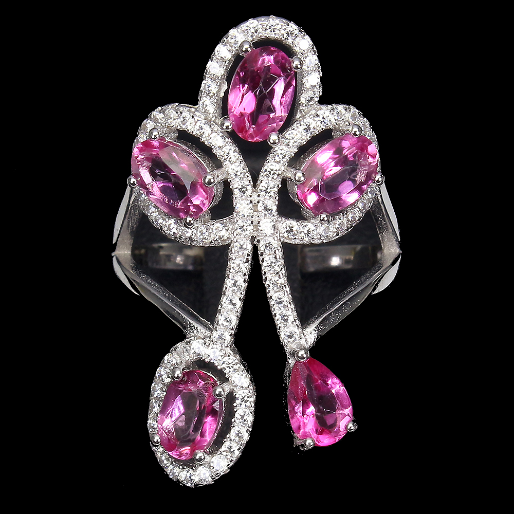 Oval Pink Topaz 6x4mm Cz 14K White Gold Plate 925 Sterling Silver Ring Size 8.5