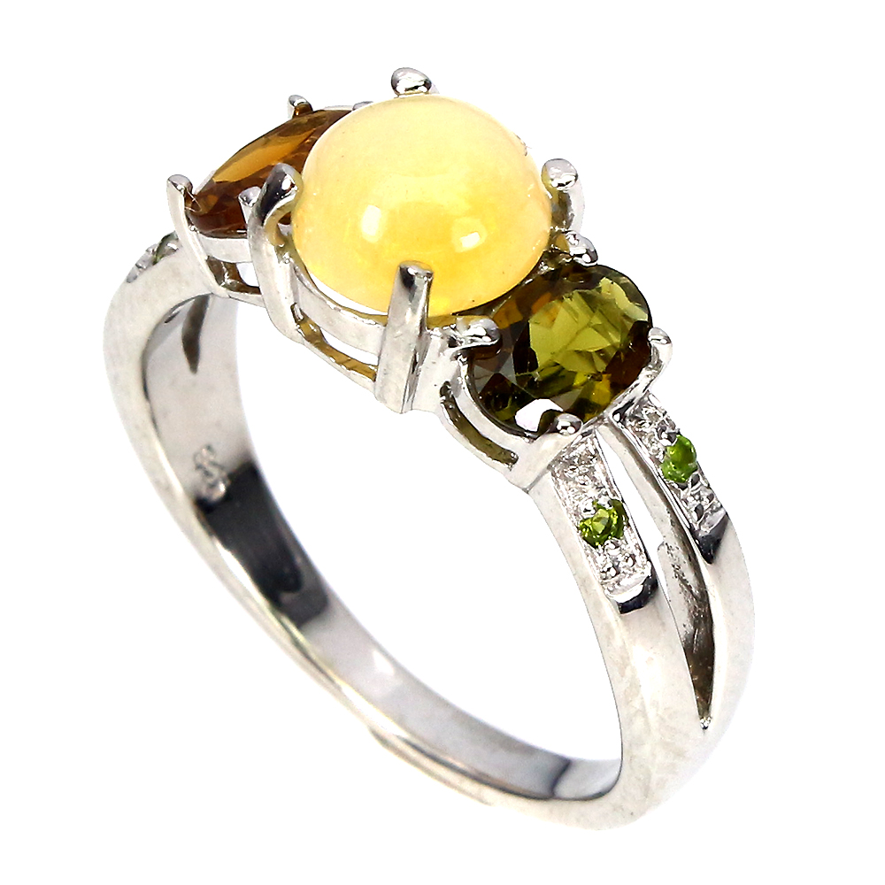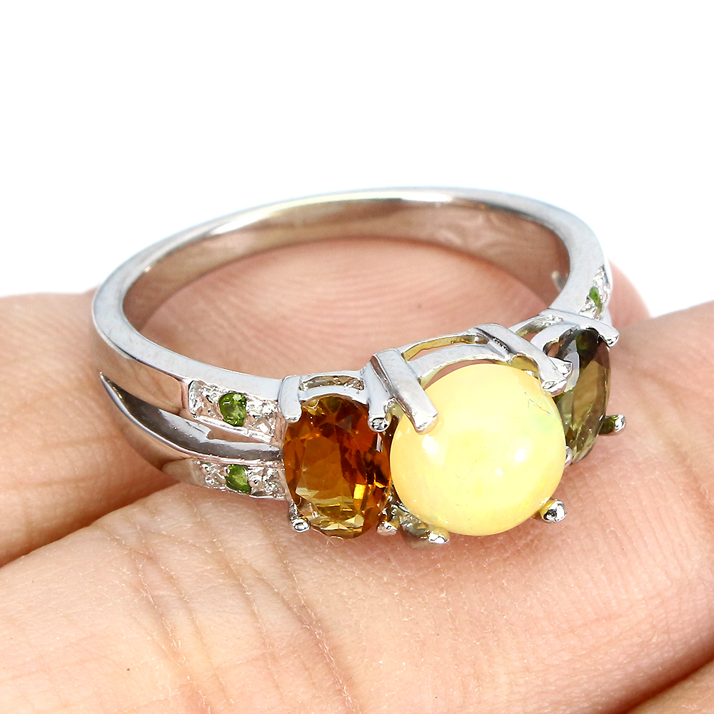 Unheated Round Fire Opal 7mm Chrome Diopside Gems 925 Sterling Silver Ring 7