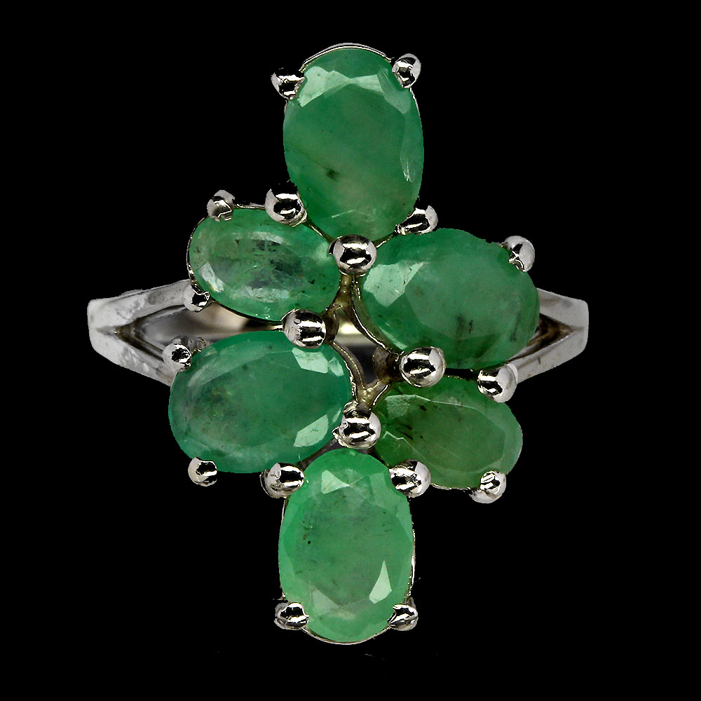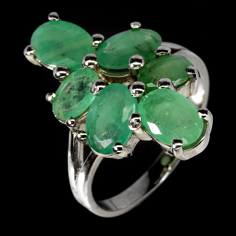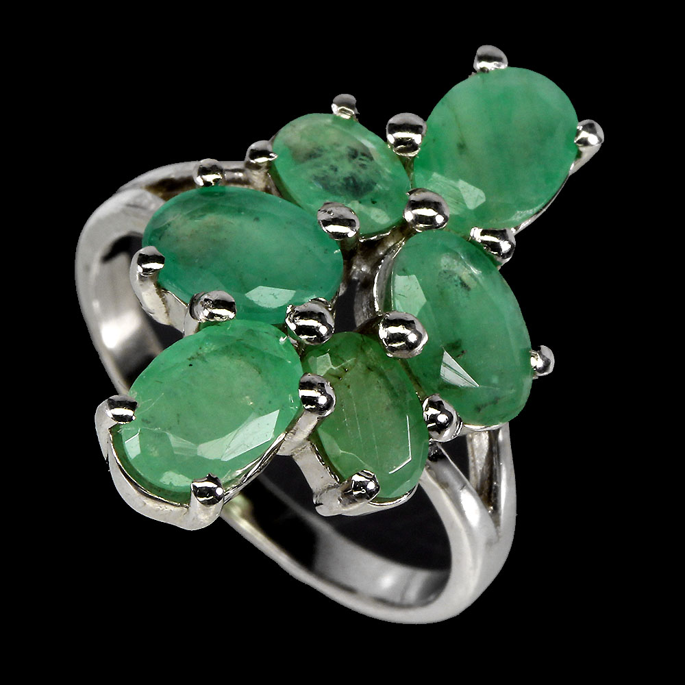 Unheated Oval Green Emerald 7x5mm 14K White Gold Plate 925 Sterling Silver Ring