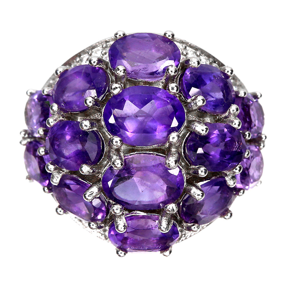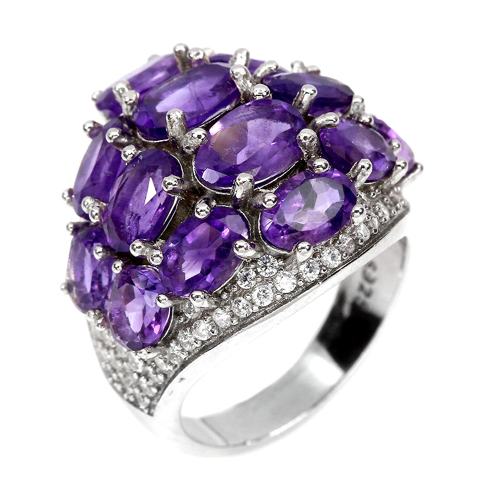 Unheated Oval Amethyst 7x5mm Cz 14K White Gold Plate 925 Sterling Silver Ring