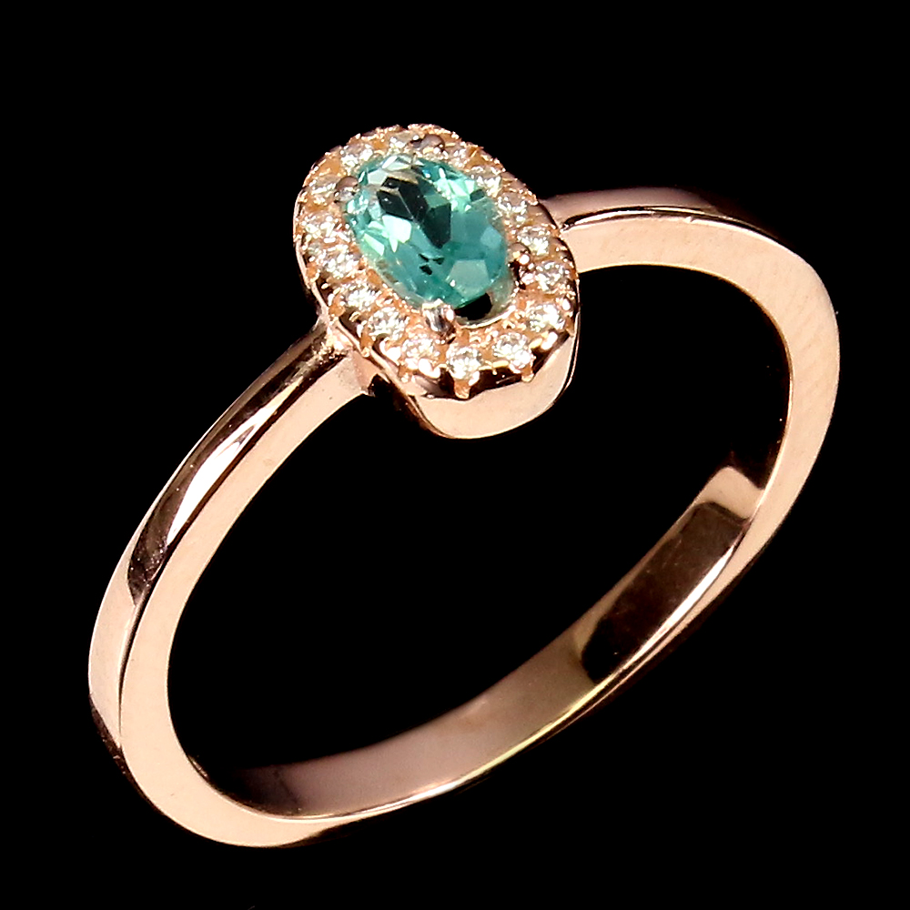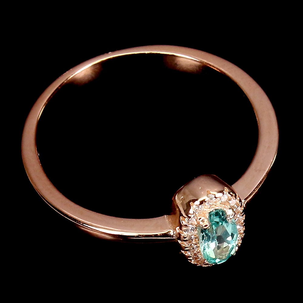 Unheated Oval Apatite 5x3mm Cz 14K Rose Gold Plate 925 Sterling Silver Ring 8