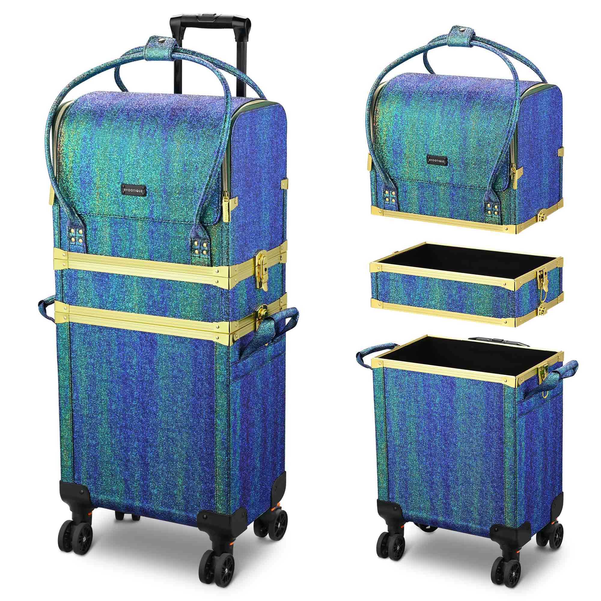 - Eye-Catching Malachite Green Color - Byootique Rolling Makeup Train Case features gradient color with attractive bling, making it eye-catching, fashionable, easy to find and helping you express your unique personality, great for professional makeup artists, manicurists, beauticians, tattoo artists, and beauty lovers