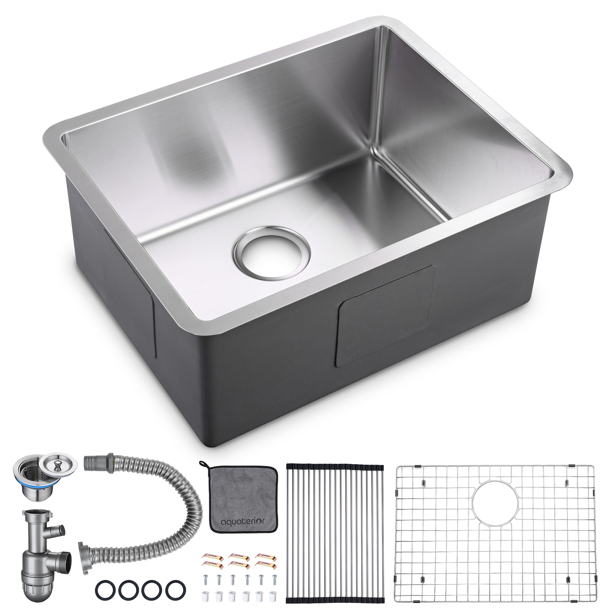 23" x 18" x 10" Aquaterior single bowl kitchen sink is made of 16-gauge 304 stainless steel for providing durability and dent-resistance. It offers a large capacity for washing different kinds of tableware and it is perfect for both commercial and home use and widely used in restaurants, cafes, bars, etc.