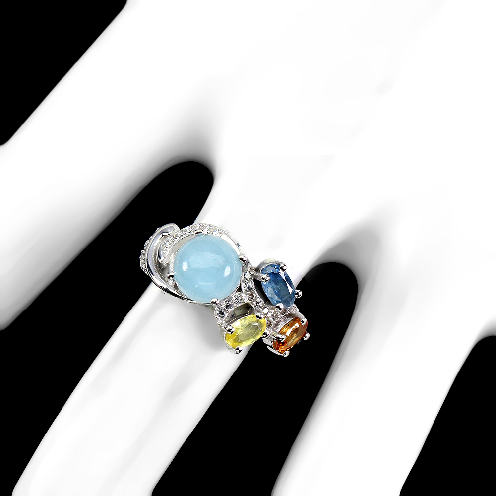 Unheated Round Aquamarine 7mm Sapphire Multi Colors Cz 925 Sterling Silver Ring