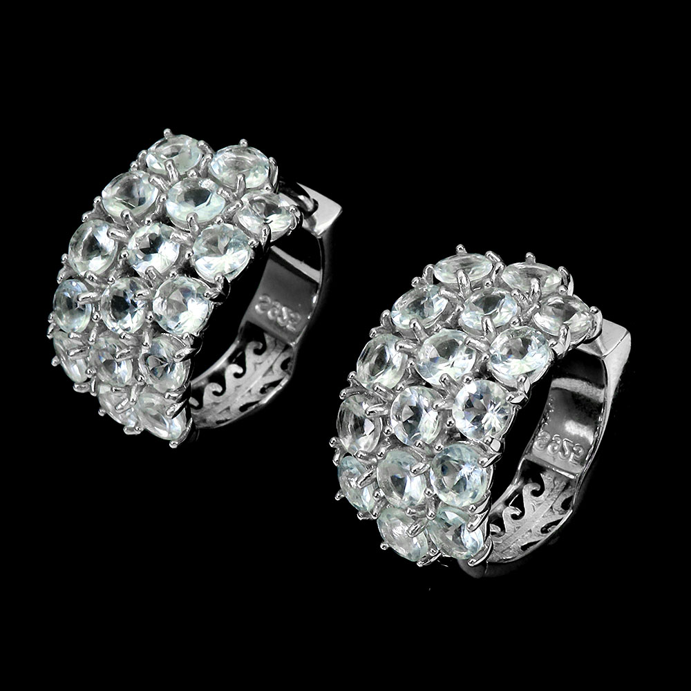 Unheated Oval Aquamarine 4mm 14K White Gold Plate 925 Sterling Silver Earrings