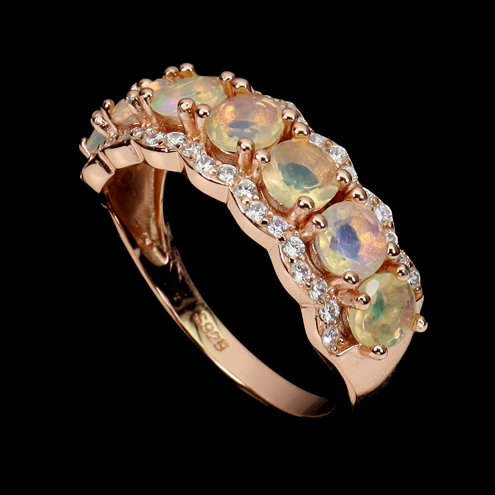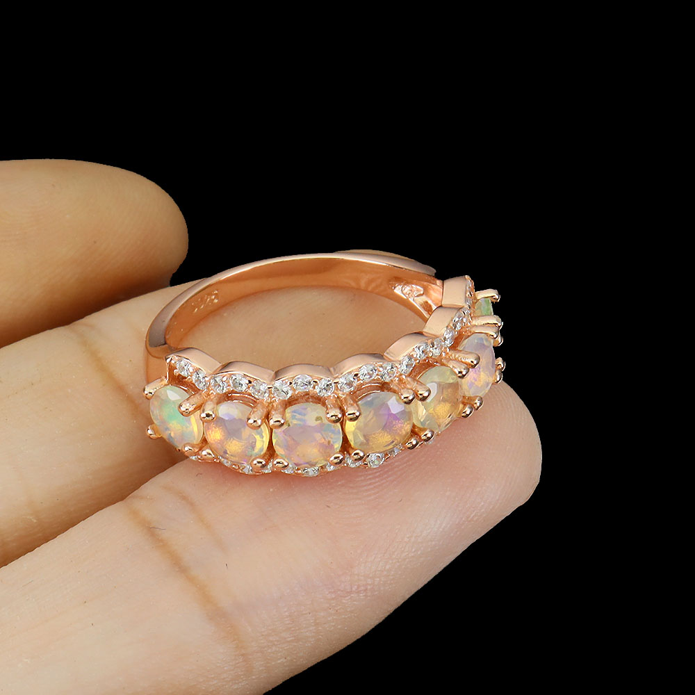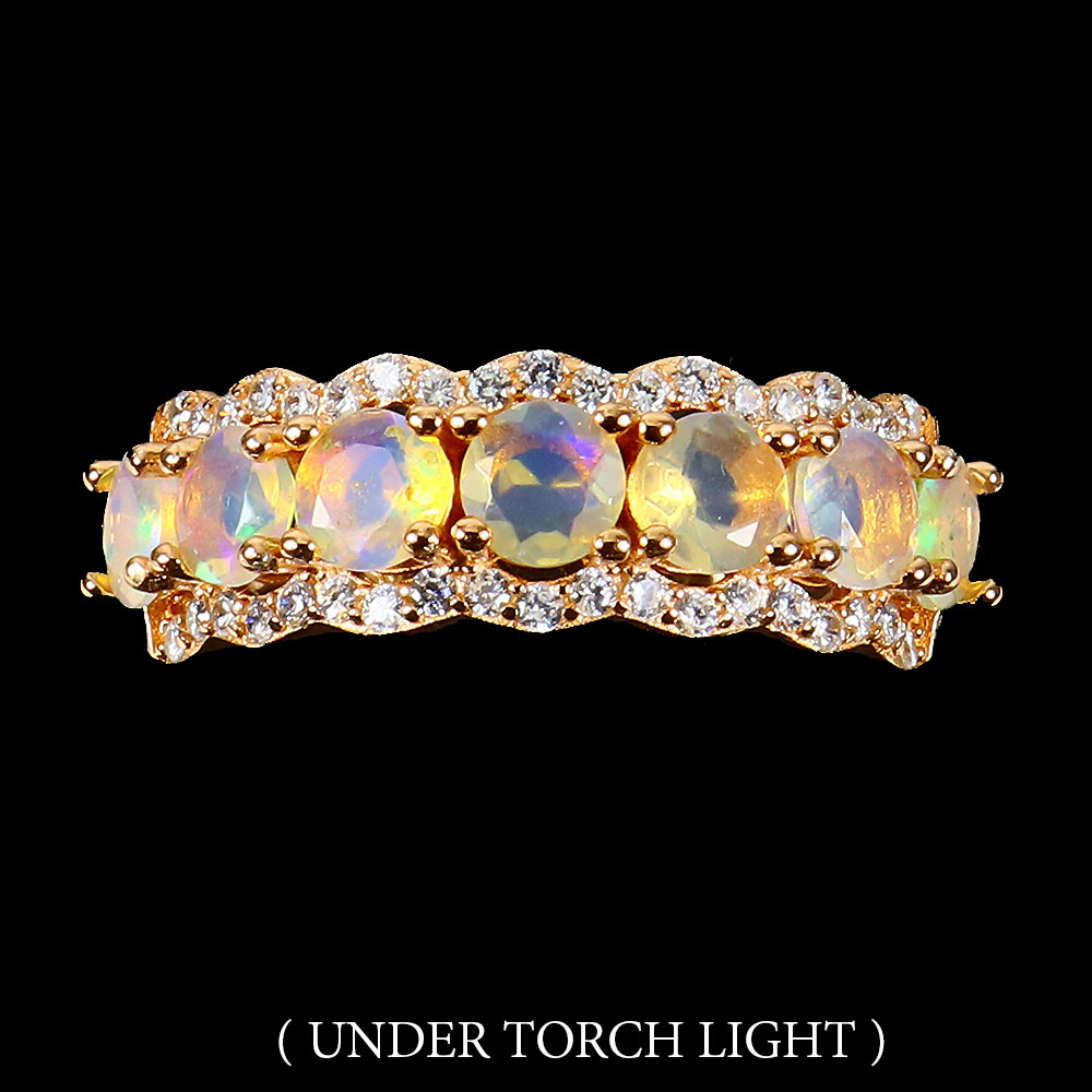 Unheated Round Fire Opal 4mm Simulated Cz 925 Sterling Silver Ring Size 7