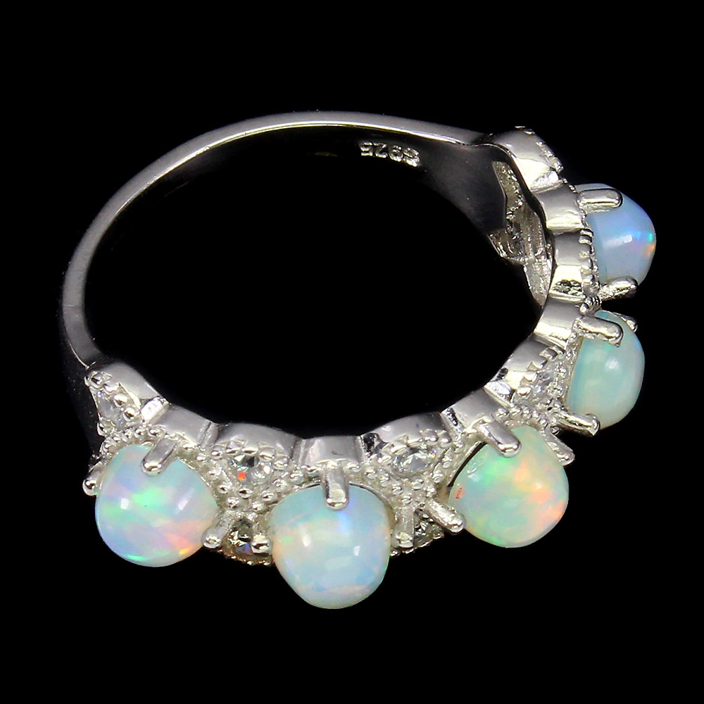 Unheated Round Fire Opal 5mm Simulated Cz 925 Sterling Silver Ring Size 9.5