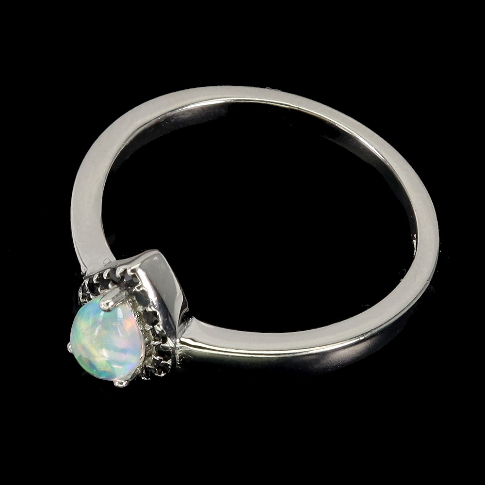 Unheated Pear Fire Opal Rainbow 5x3mm Black Spinel 925 Sterling Silver Ring Size 7