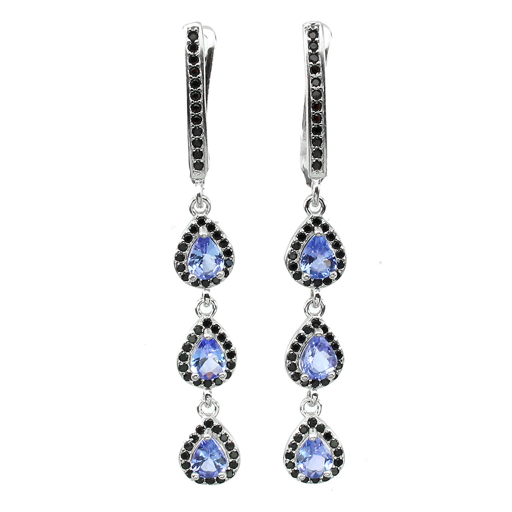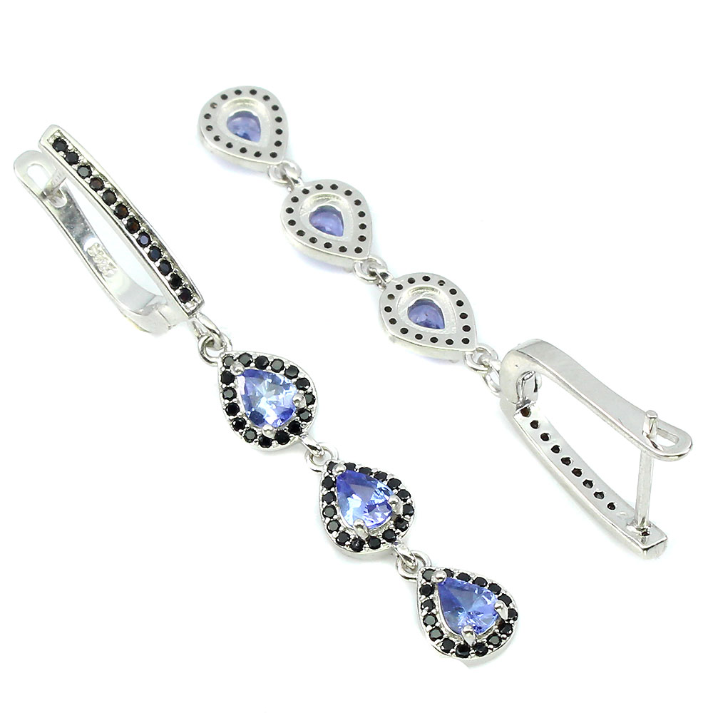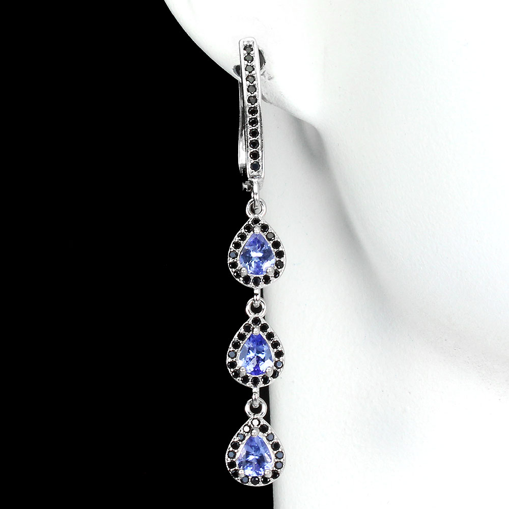 Unheated Pear Blue Tanzanite 5x4mm Black Spinel 925 Sterling Silver Earrings