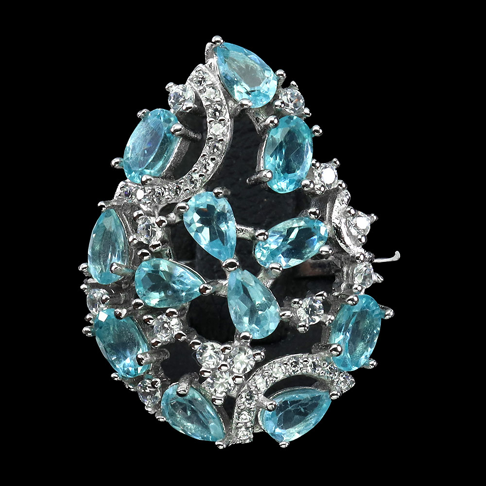 Unheated Pear Blue Apatite 5x3mm Simulated Cz 925 Sterling Silver Ring Size 8.5
