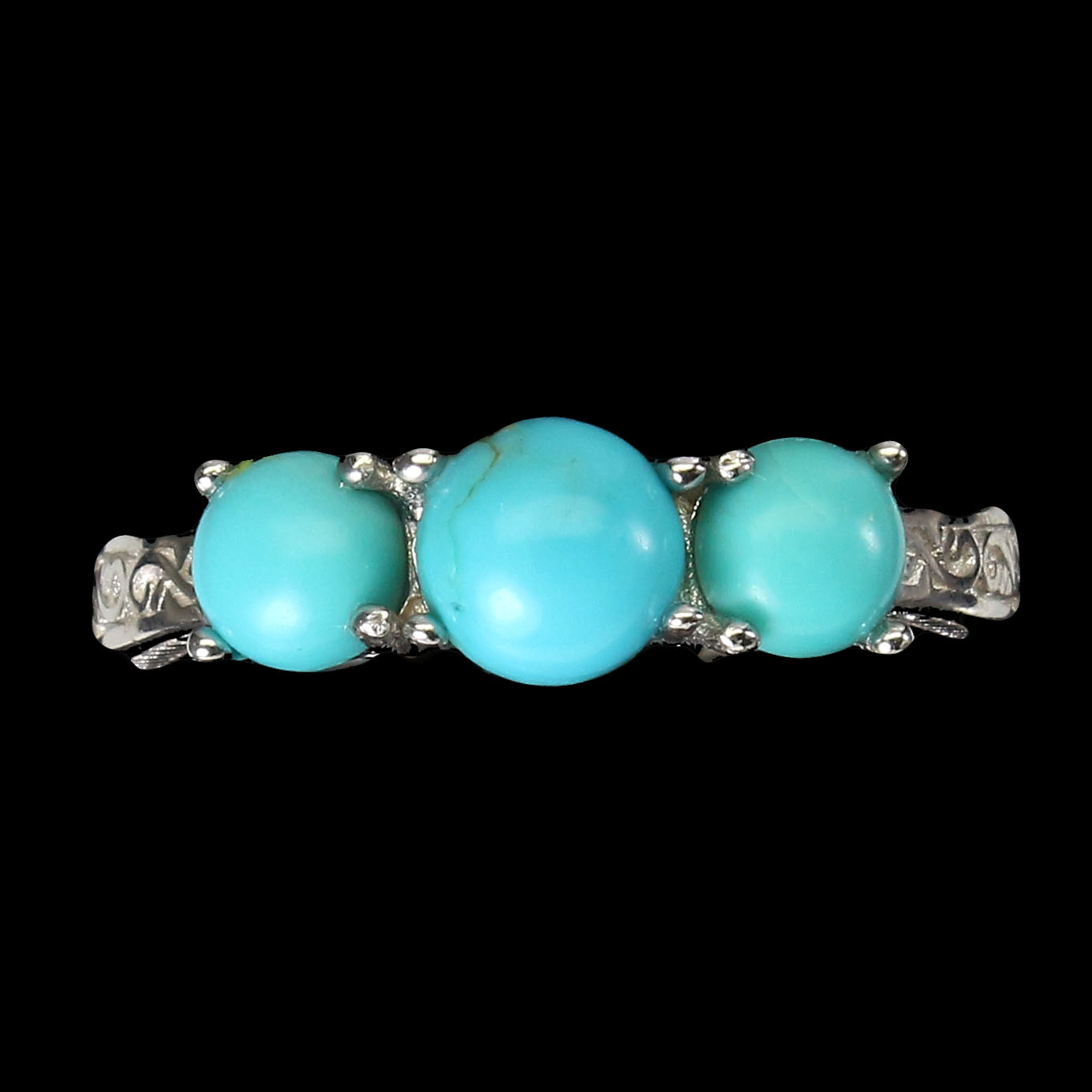Unheated Round Turquoise 6mm 14K White Gold Plate 925 Sterling Silver Ring 7.5