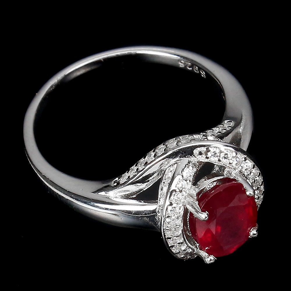 Heated Oval Ruby 8x6mm Simulated Cz White Gold Plate 925 Sterling Silver Ring 7