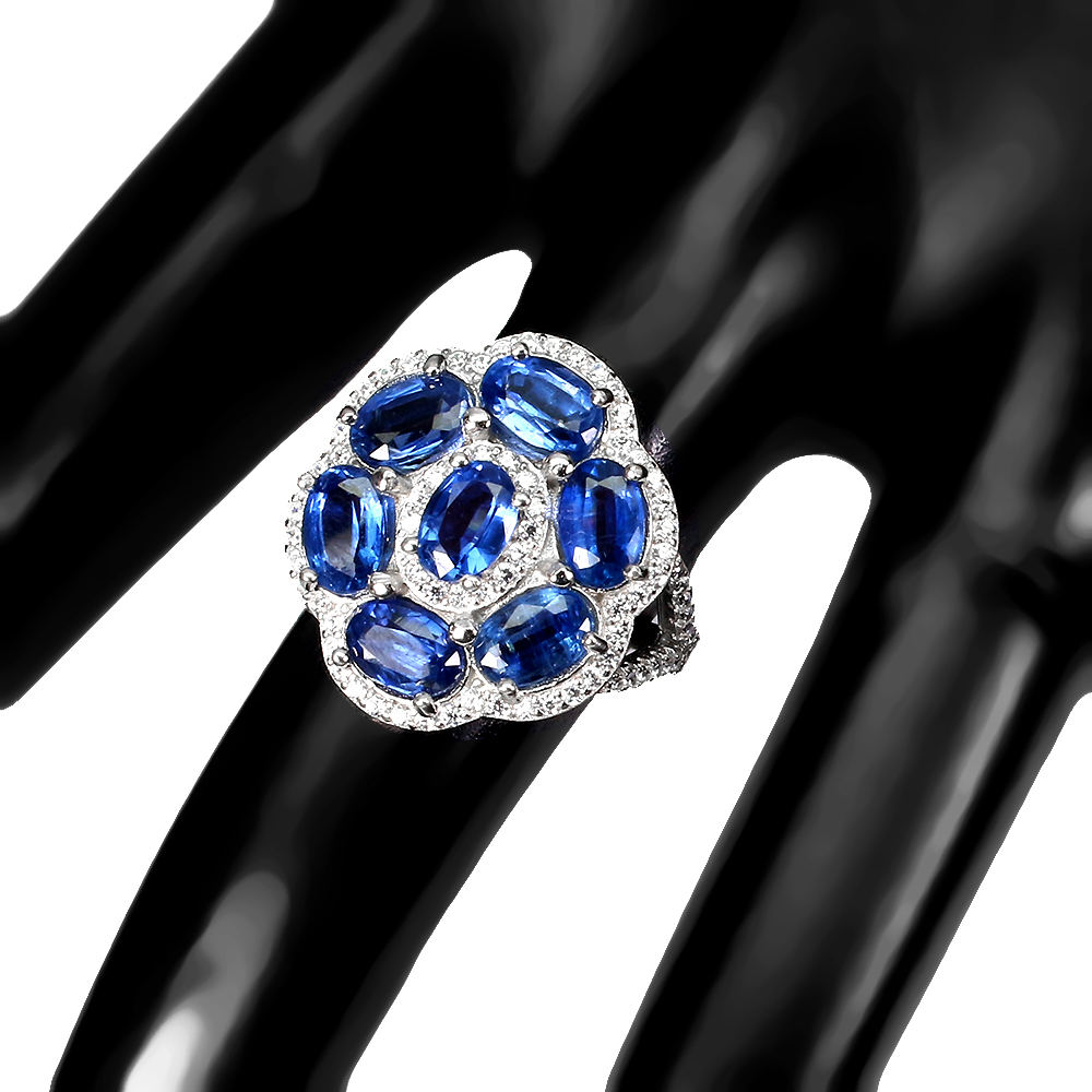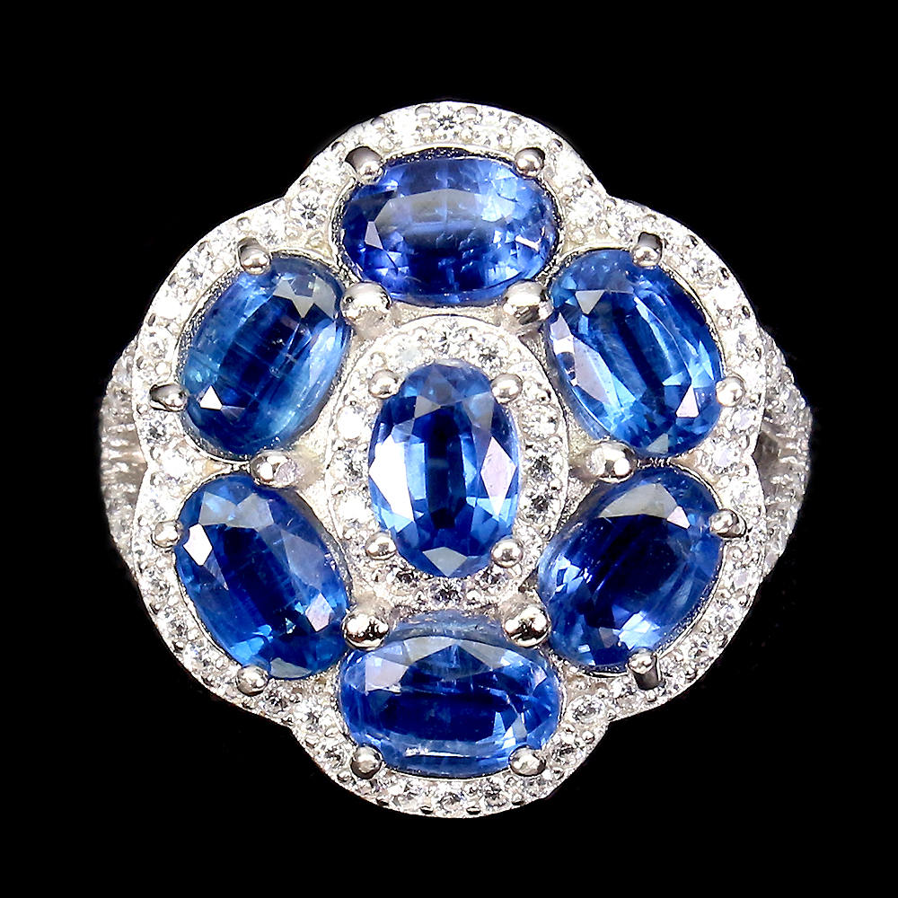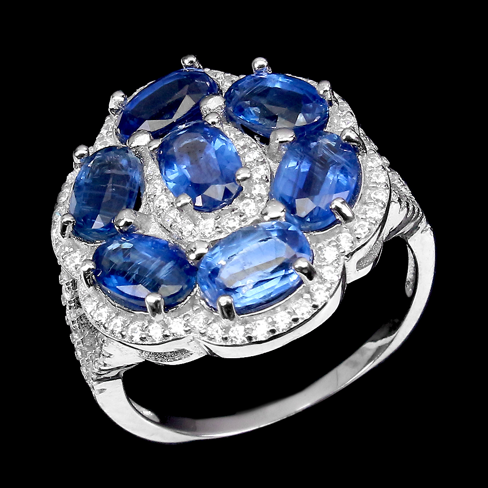 Unheat Oval Blue Kyanite 6x4mm Cz 14K White Gold Plate 925 Sterling Silver Ring