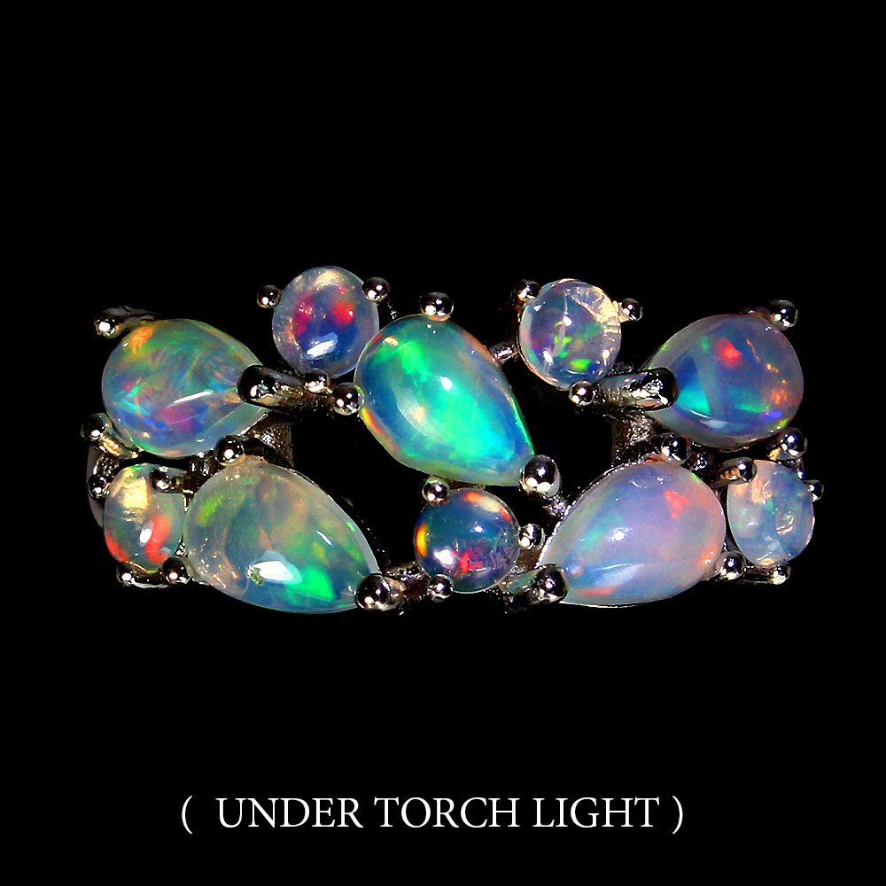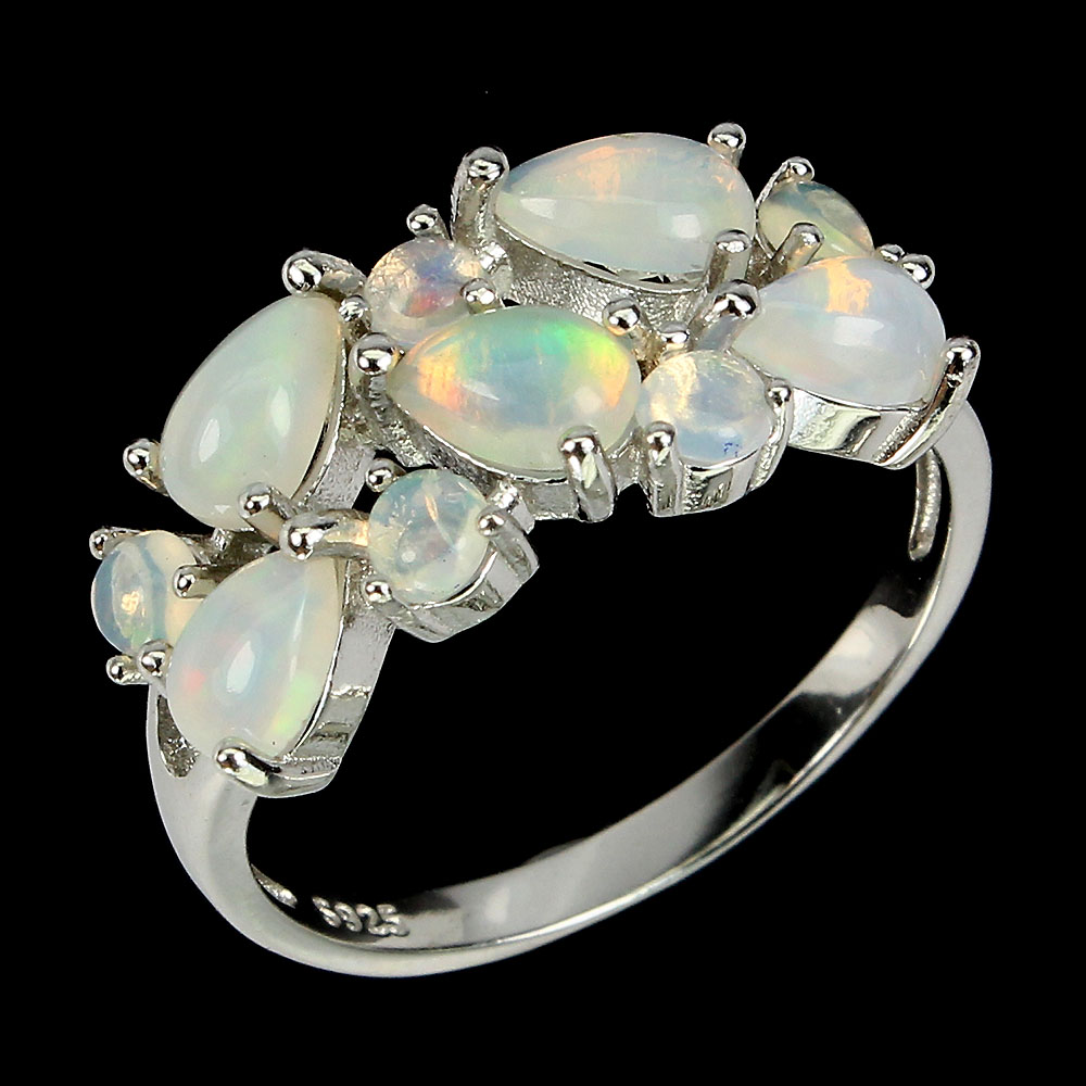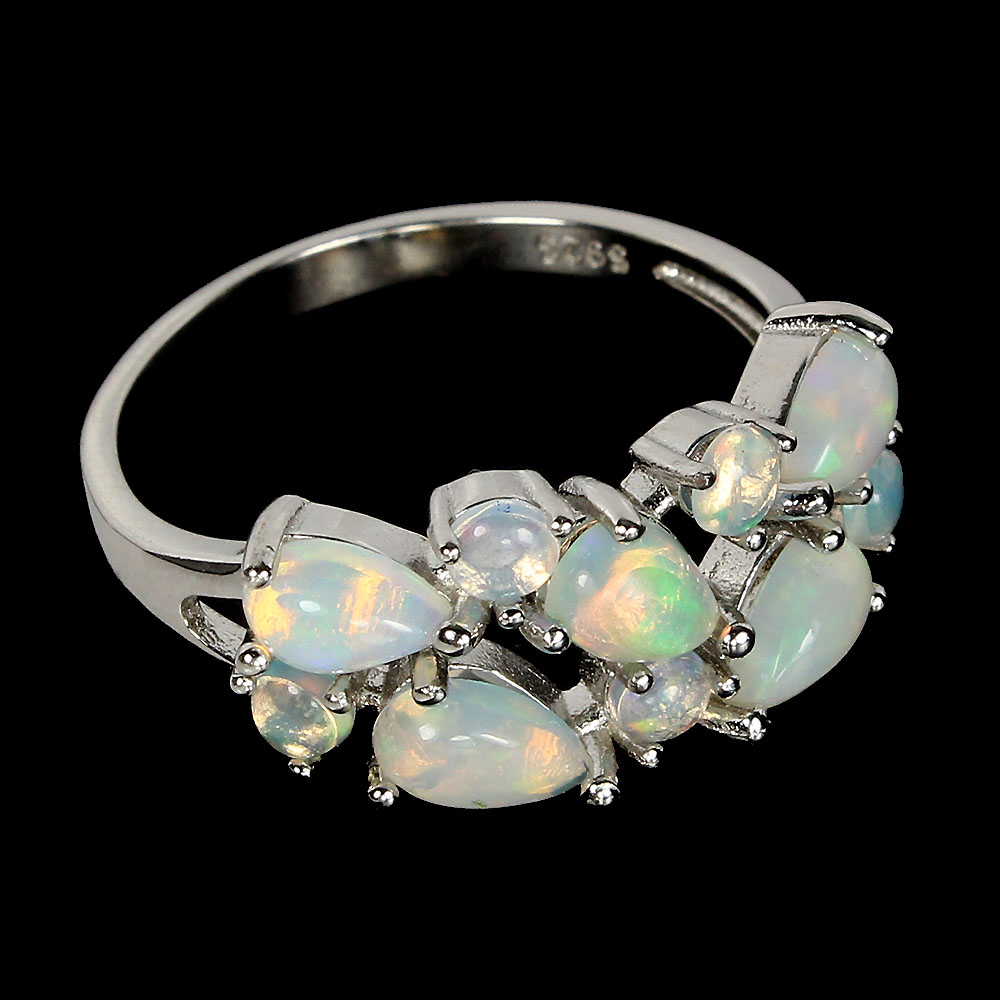 Unheated Pear Fire Opal Rainbow Full Flash 6x4mm 925 Sterling Silver Ring Size 9