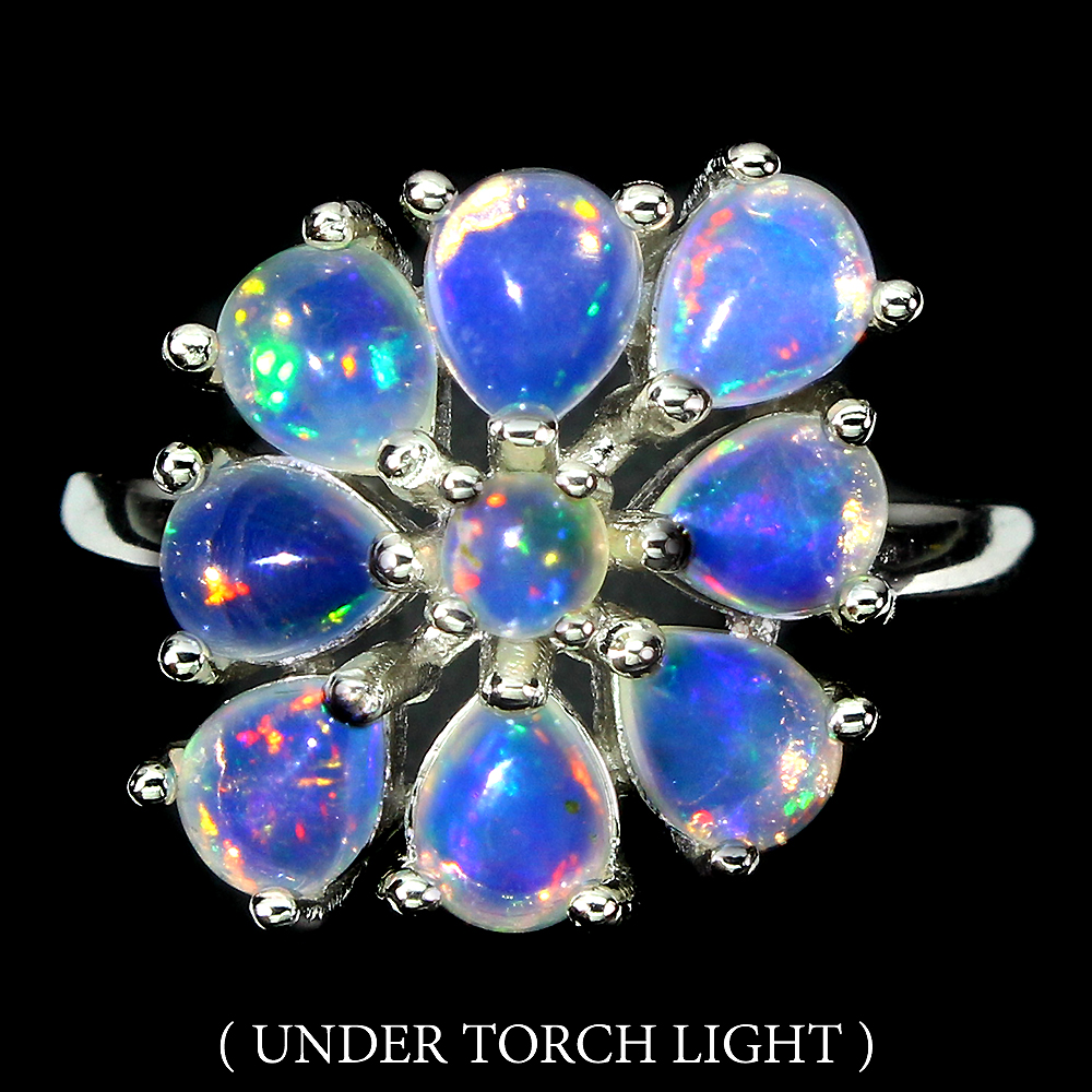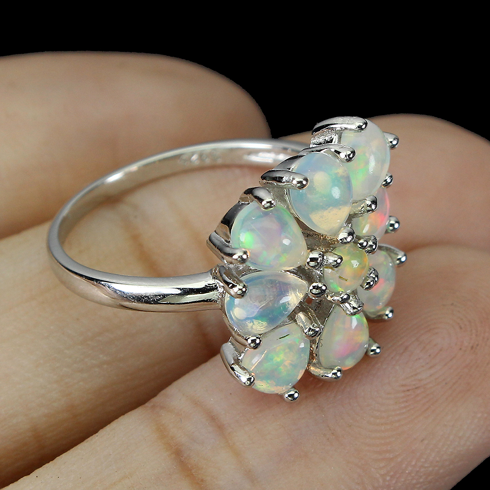 Clarity Enhanced Pear Fire Opal 5x4mm Emerald 925 Sterling Silver Ring Size 7