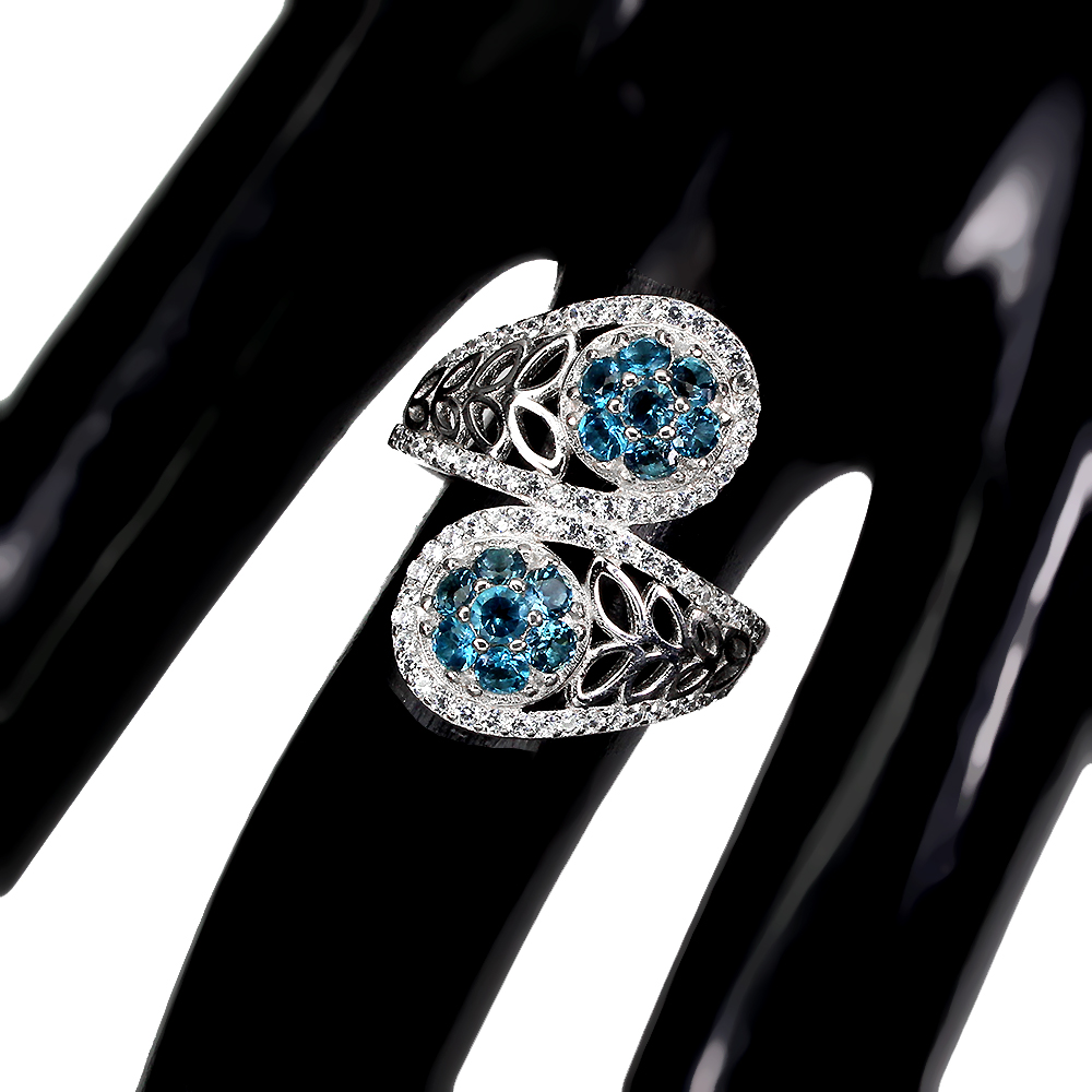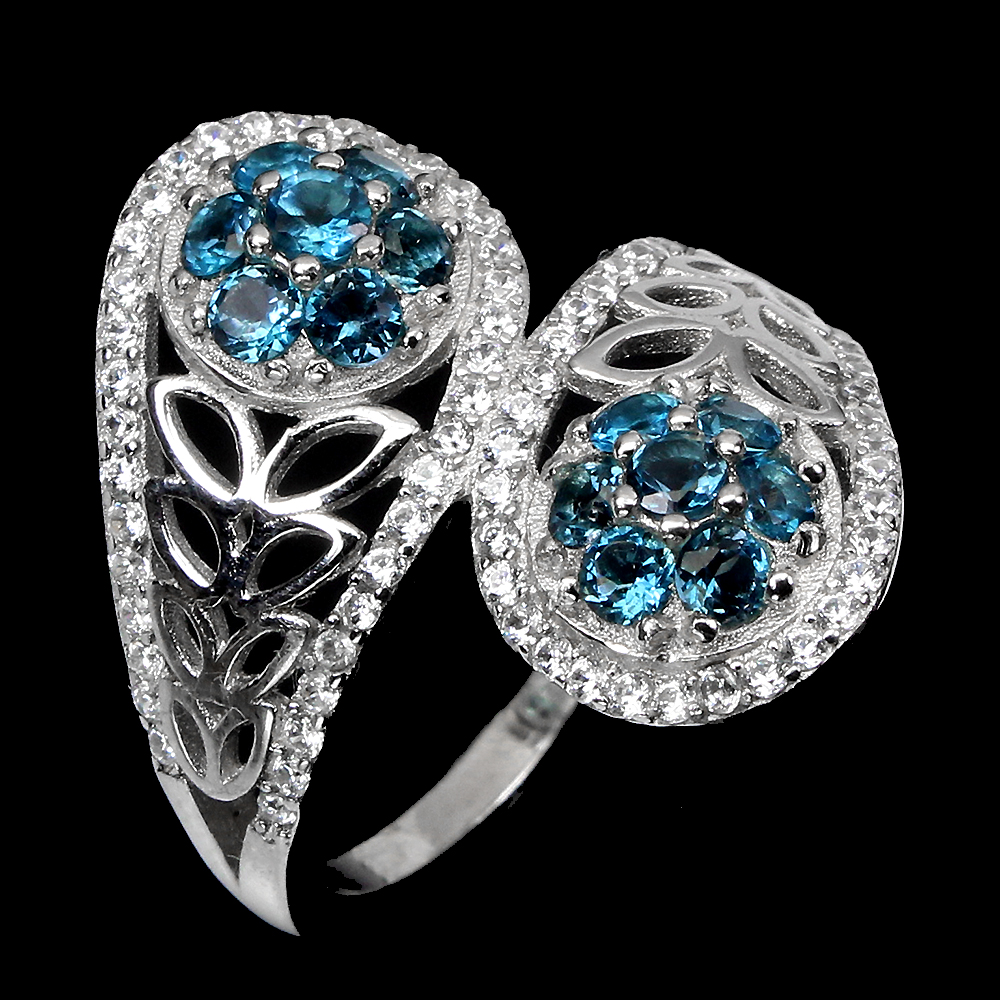 Round London Blue Topaz 2.5mm Cz 14K White Gold Plate 925 Sterling Silver Ring