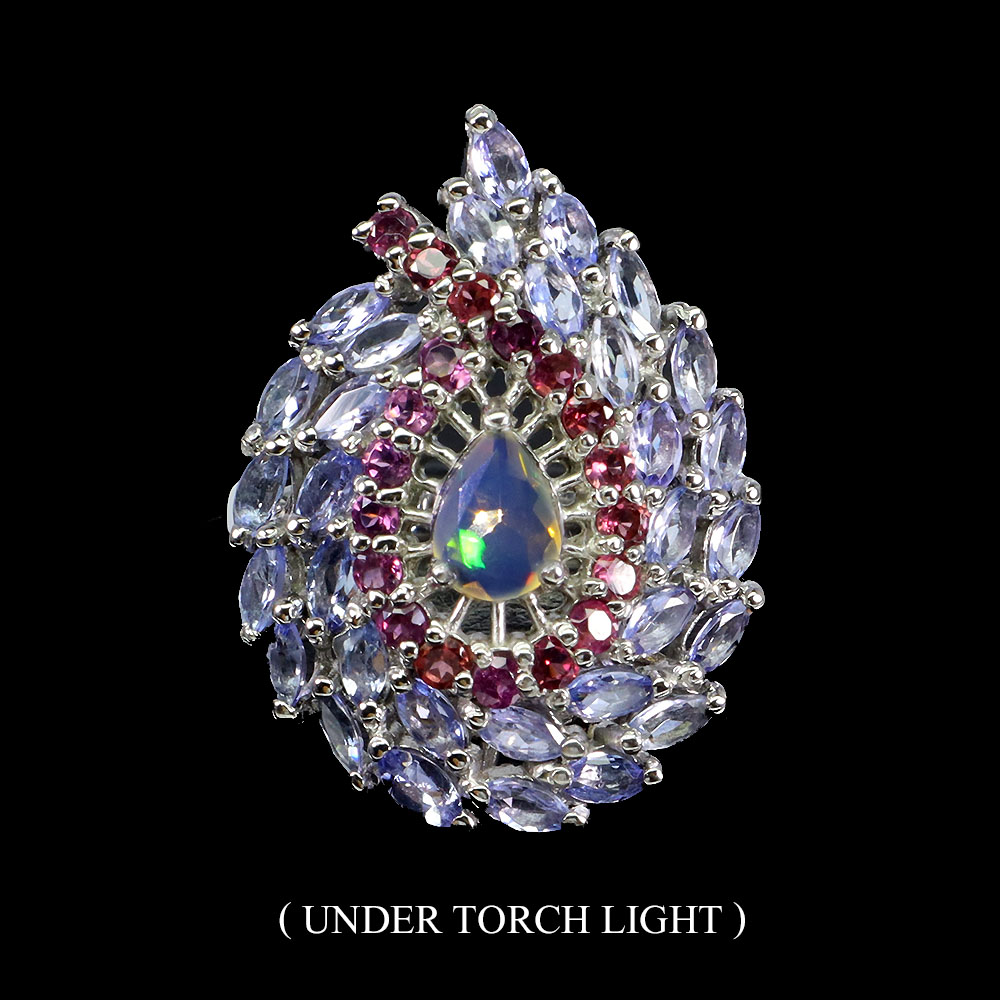 Unheated Pear Fire Opal Hot Rainbow Luster 9x6mm 925 Sterling Silver Ring Size 8