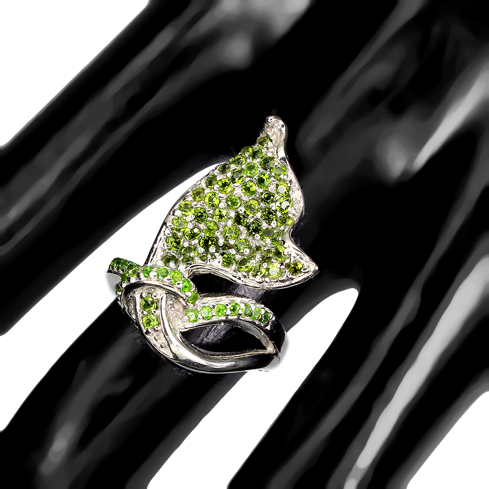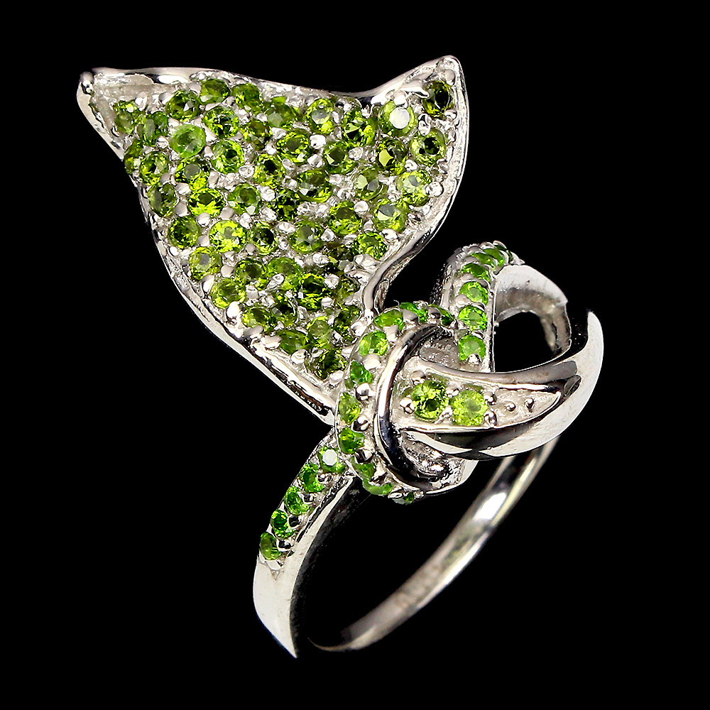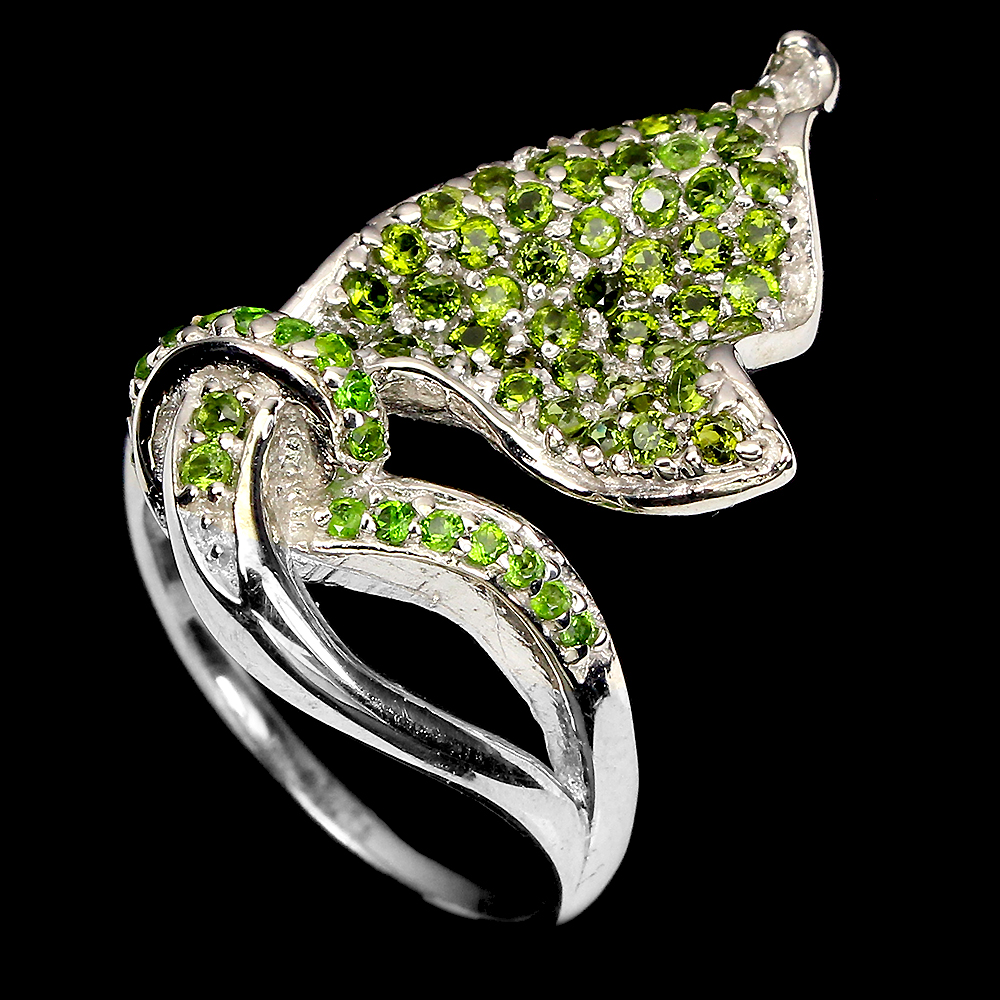 Unheated Round Chrome Diopside 14K White Gold Plate 925 Sterling Silver Ring 7