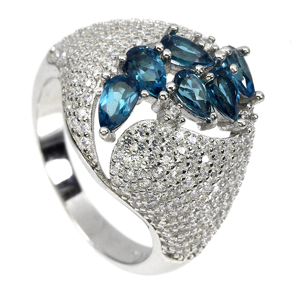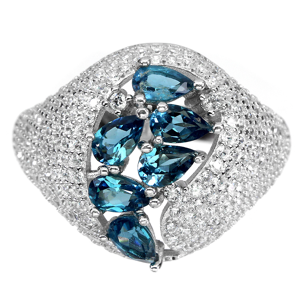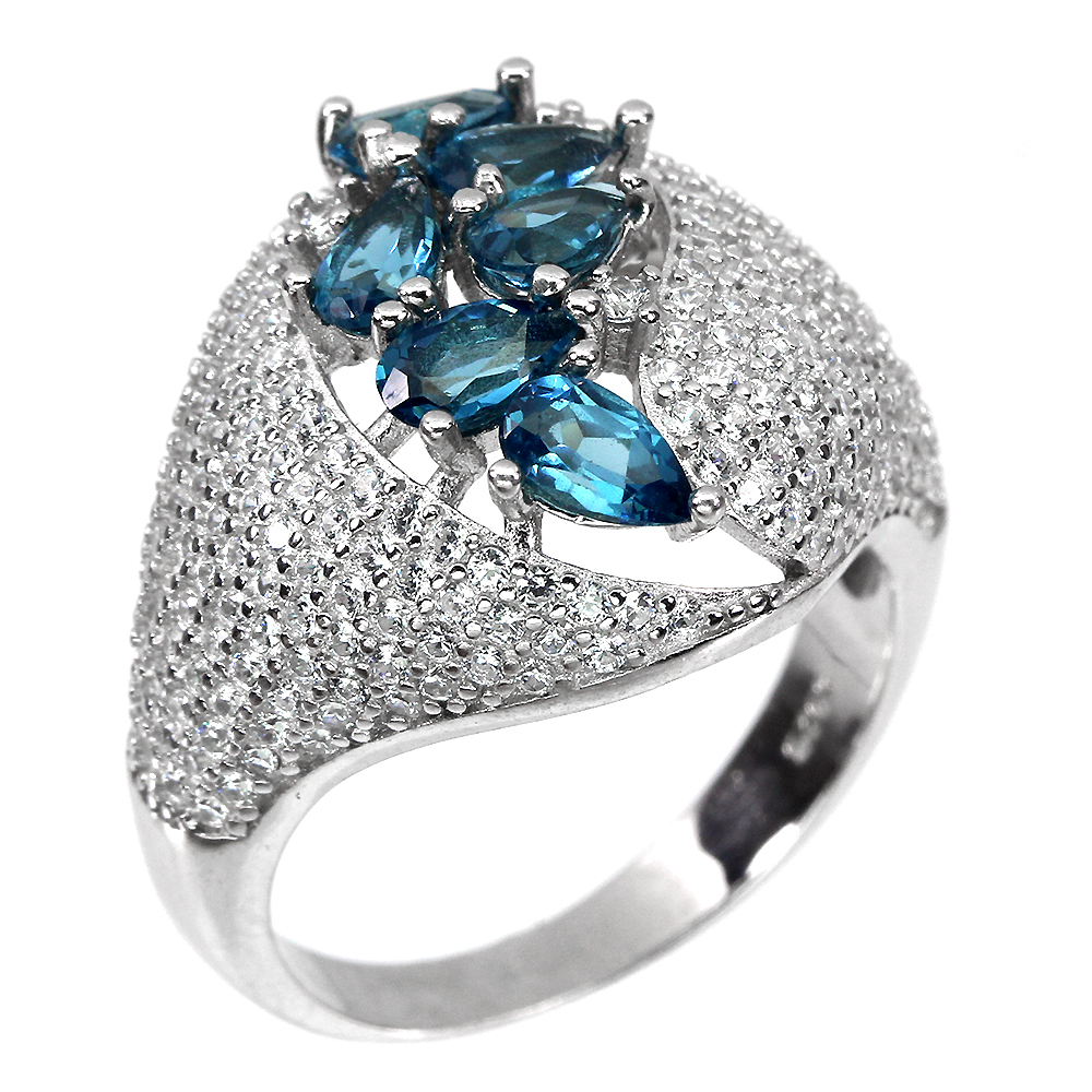 Pear London Blue Topaz 5x3mm Cz 14K White Gold Plate 925 Sterling Silver Ring