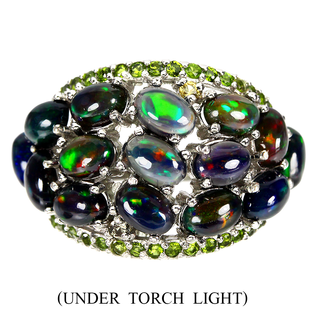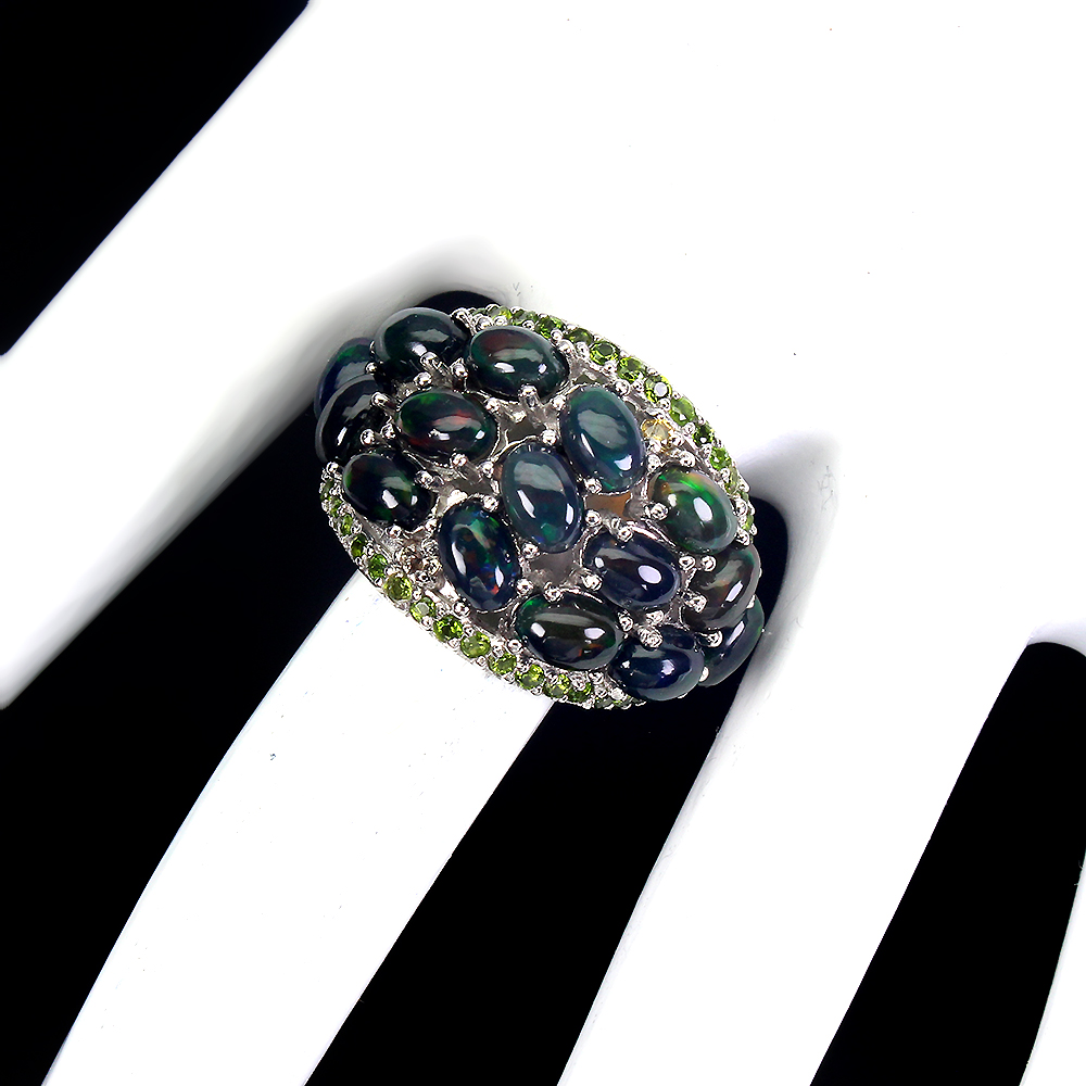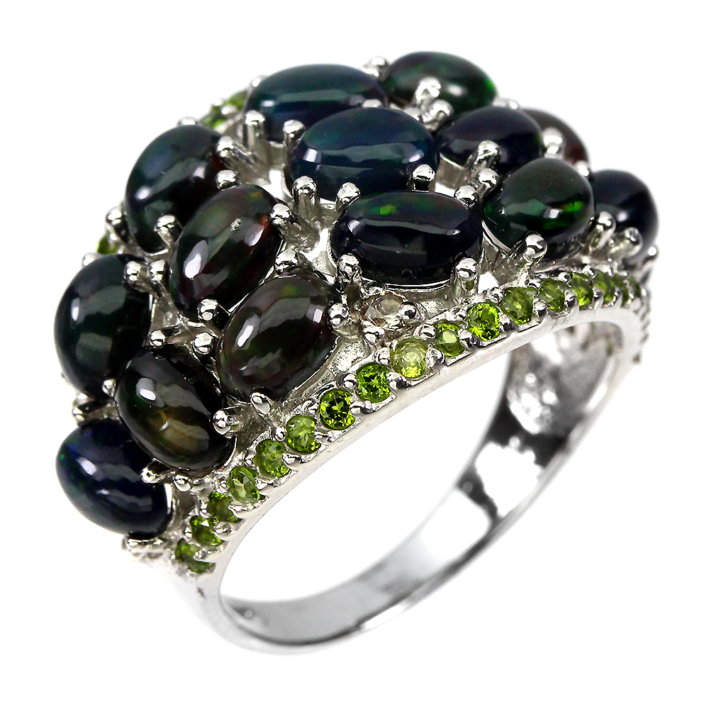Oval Black Opal Rainbow 6x4mm Chrome Diopside Sapphire 925 Sterling Silver Ring