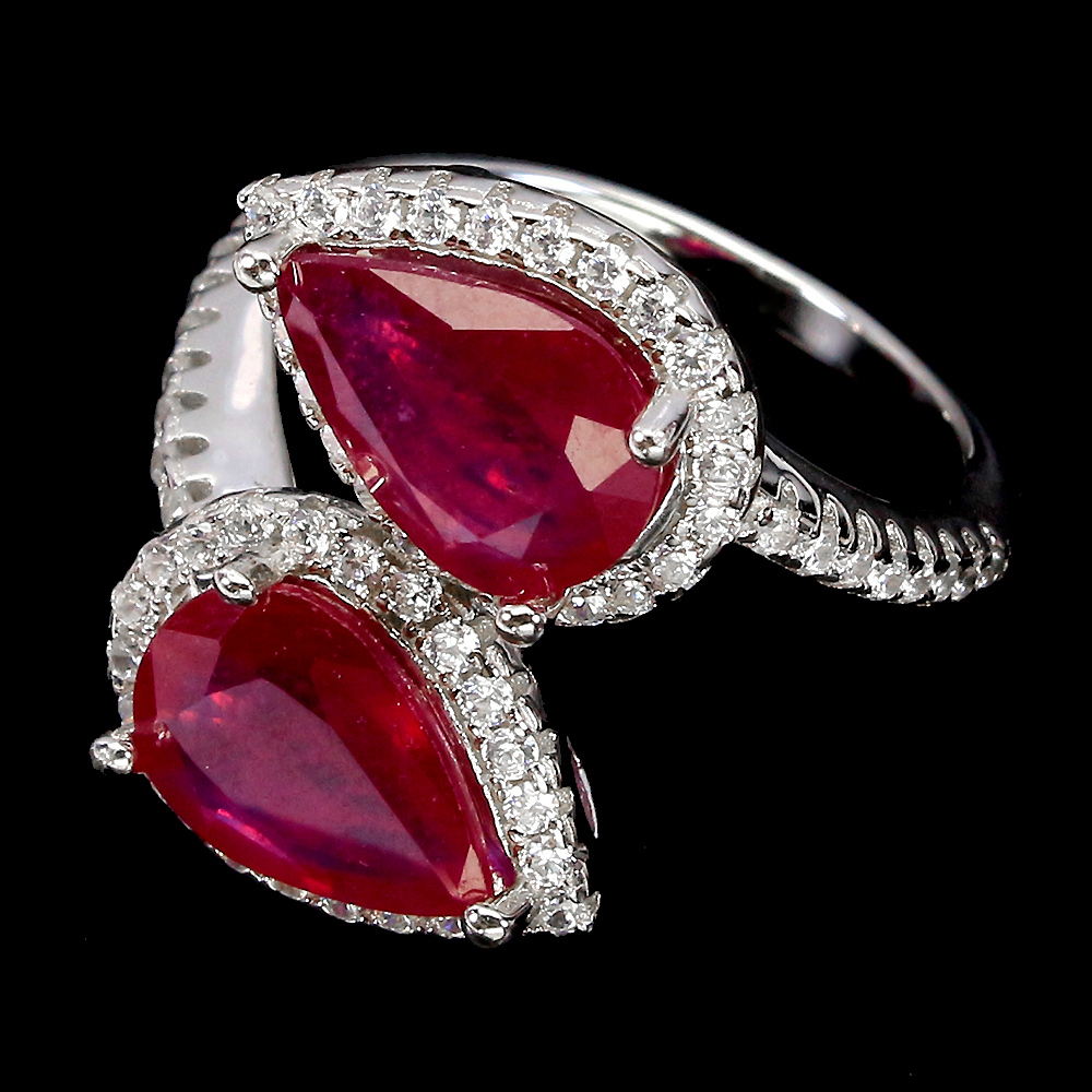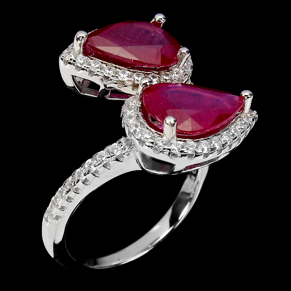Pear Red Ruby 9x7mm Cz 14K White Gold Plate 925 Sterling Silver Ring