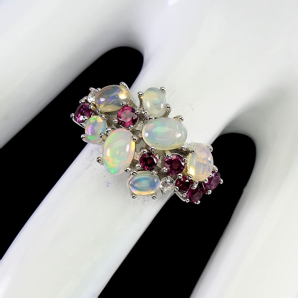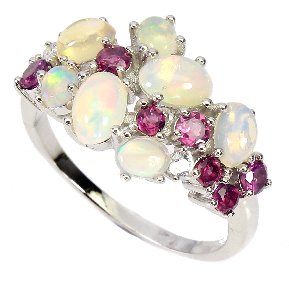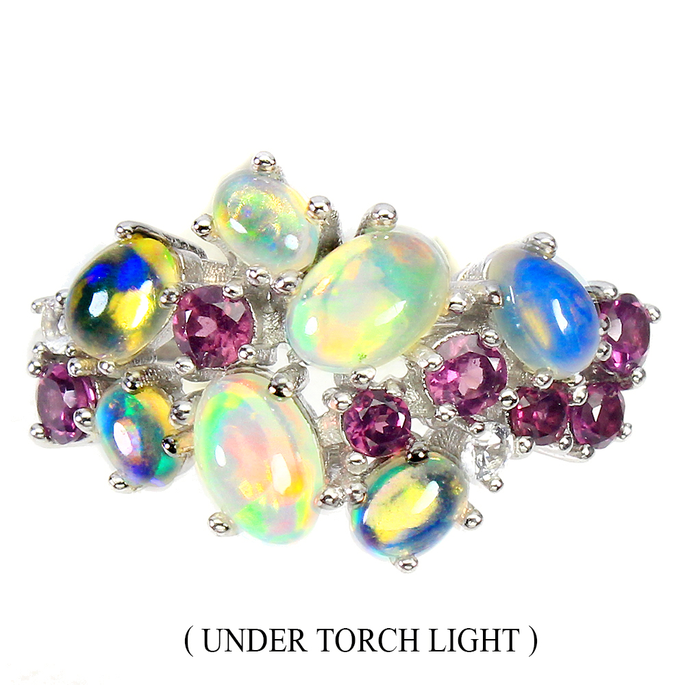 Unheated Oval Fire Opal 6x4mm Rhodolite Garnet Cz 925 Sterling Silver Ring