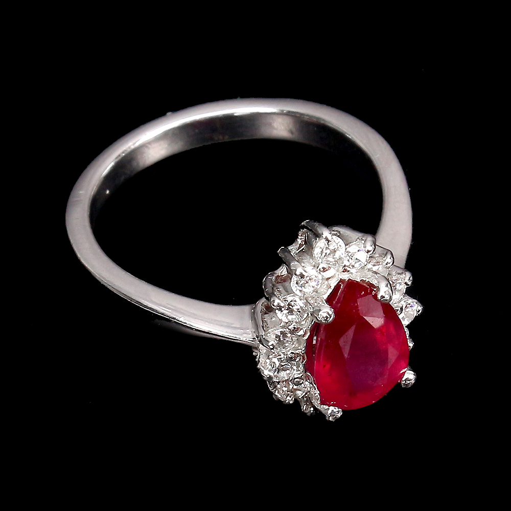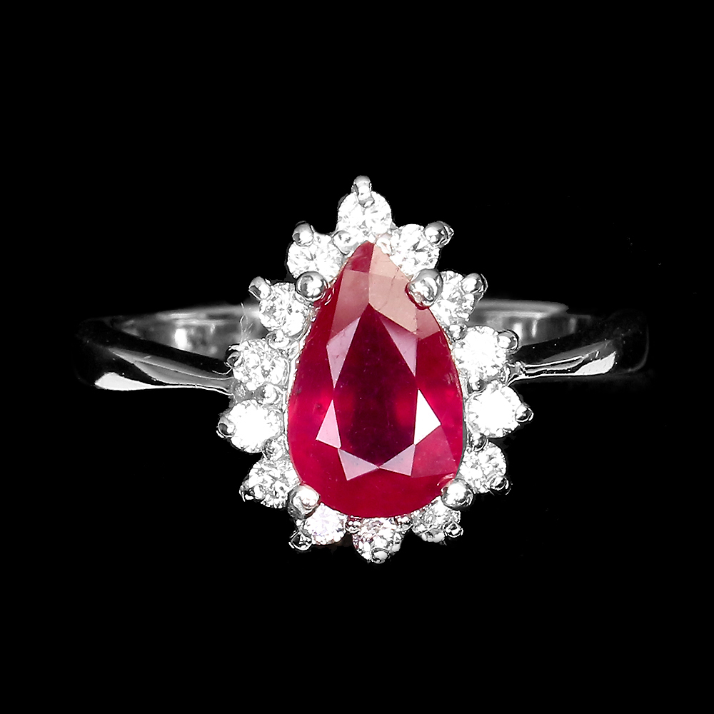 Pear Red Ruby 9x6mm Cz 14K White Gold Plate 925 Sterling Silver Ring Size 8