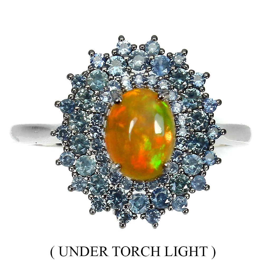 Unheated Oval Fire Opal 8x6mm Sapphire Diamond Cut 925 Sterling Silver Ring 8