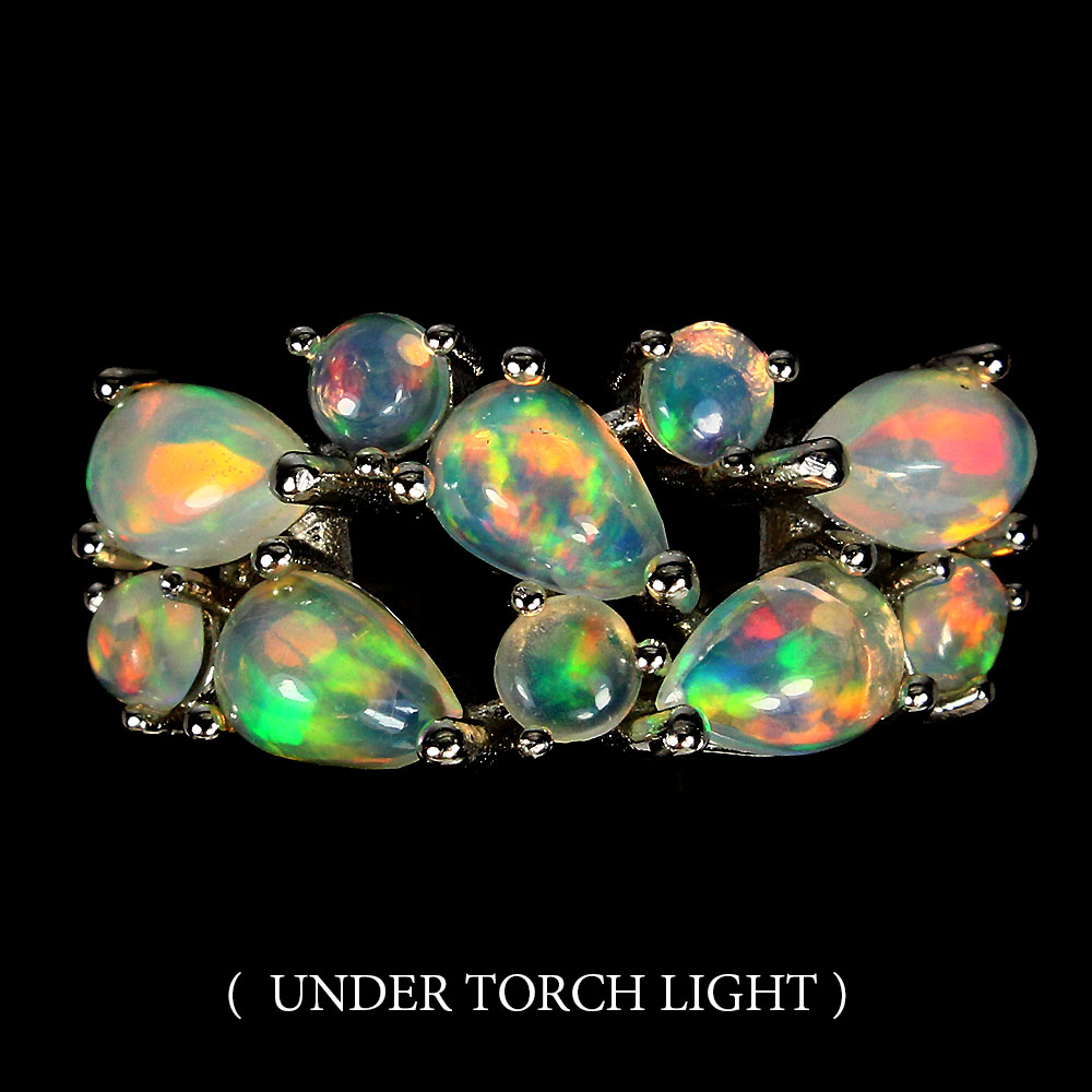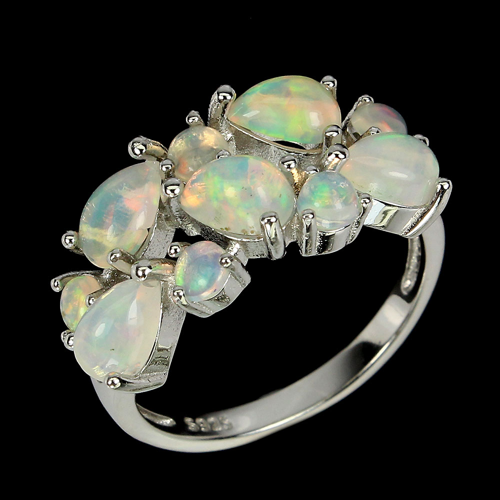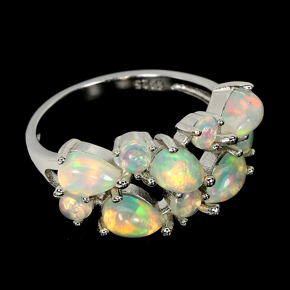 Unheated Pear Fire Opal Rainbow Full Flash 6x4mm 925 Sterling Silver Ring Size 7