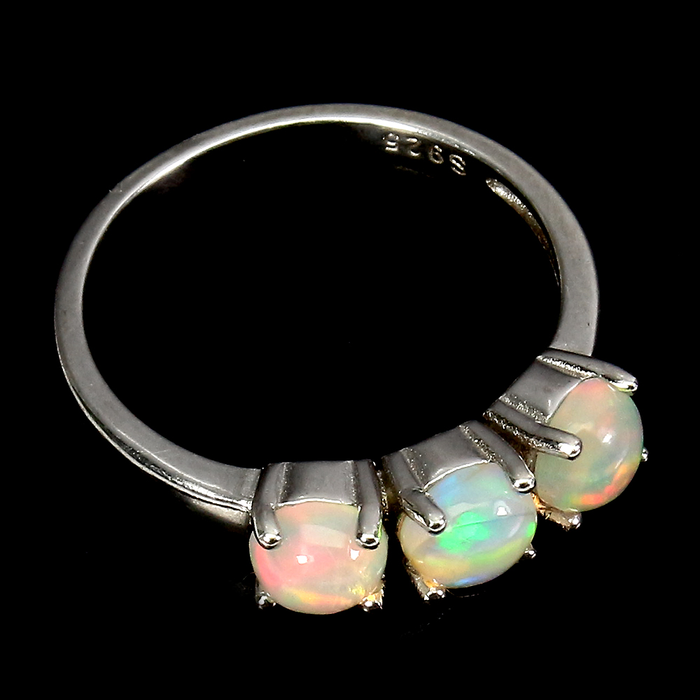 Unheated Round Fire Opal 5mm 14K White Gold Plate 925 Sterling Silver Ring 6.5