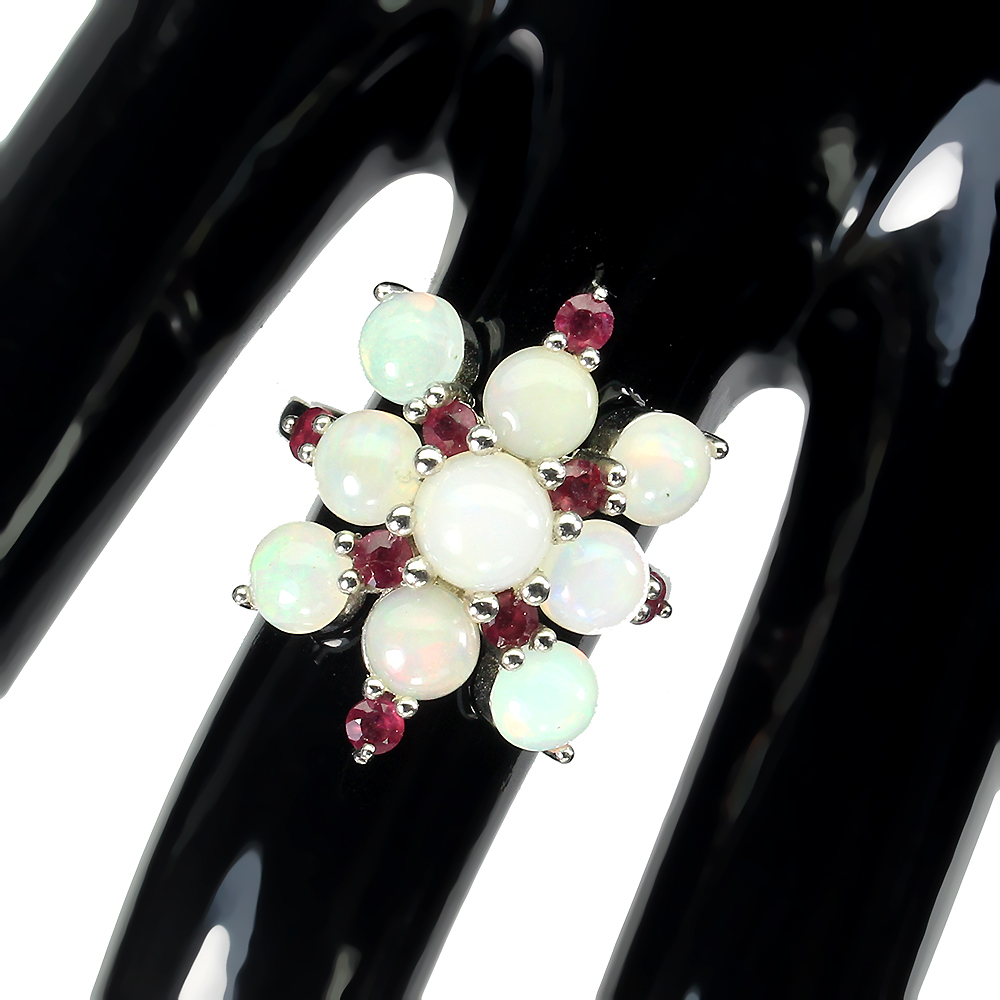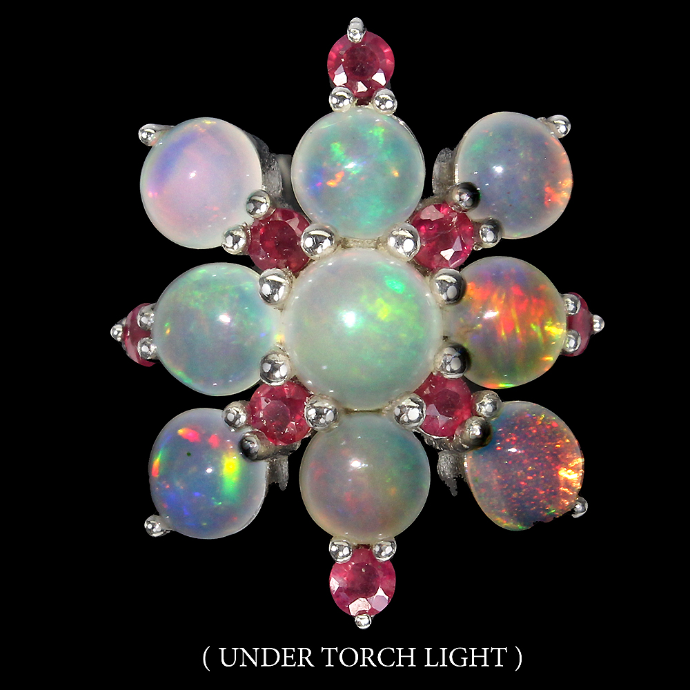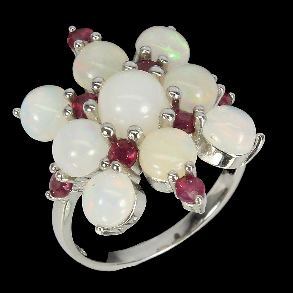 Unheated Round Fire Opal Rainbow 6mm Ruby 925 Sterling Silver Ring Size 7.5