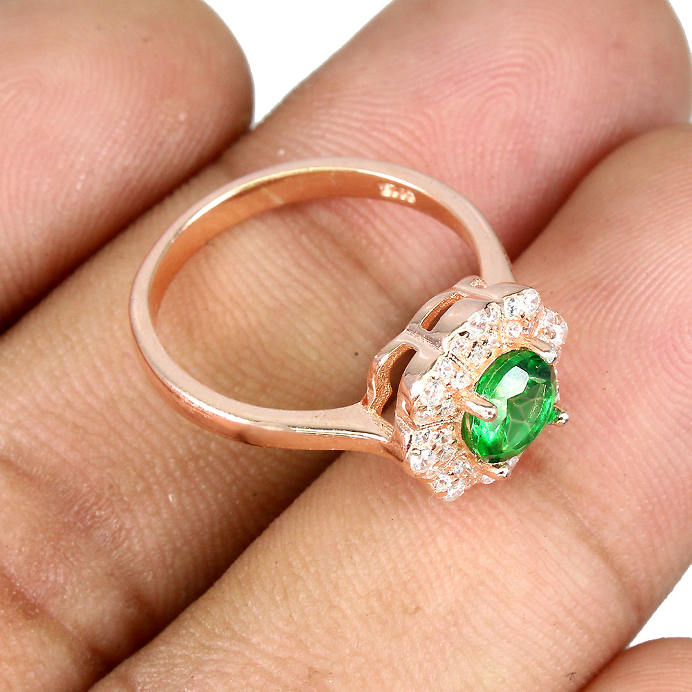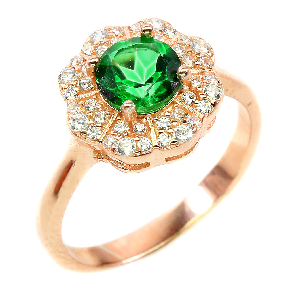 Surface Coated Round Green Topaz 6mm Simulated Cz 925 Sterling Silver Ring 7