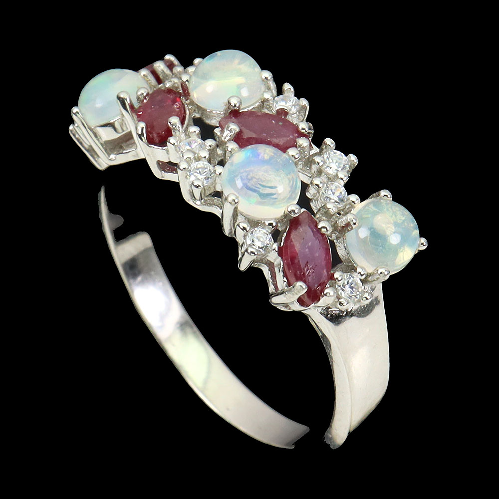 Unheated Round Fire Opal 4mm Ruby Simulated Cz 925 Sterling Silver Ring Size 9