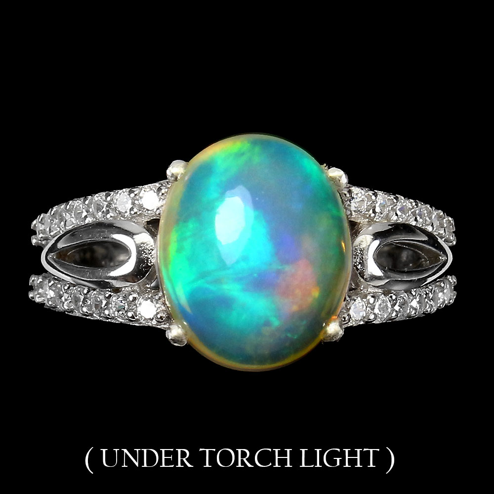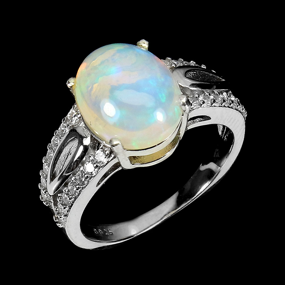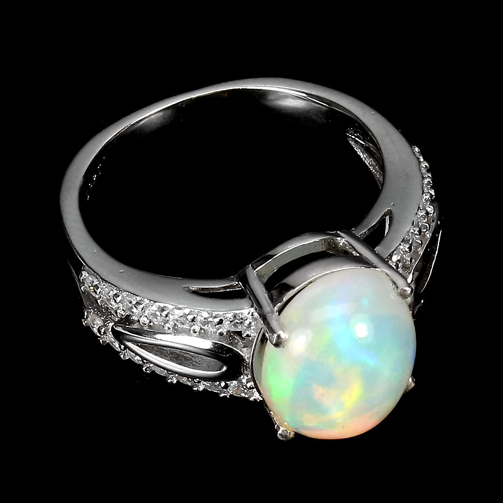 Unheated Oval Fire Opal Rainbow 11x9mm Simulated Cz 925 Sterling Silver Ring 6
