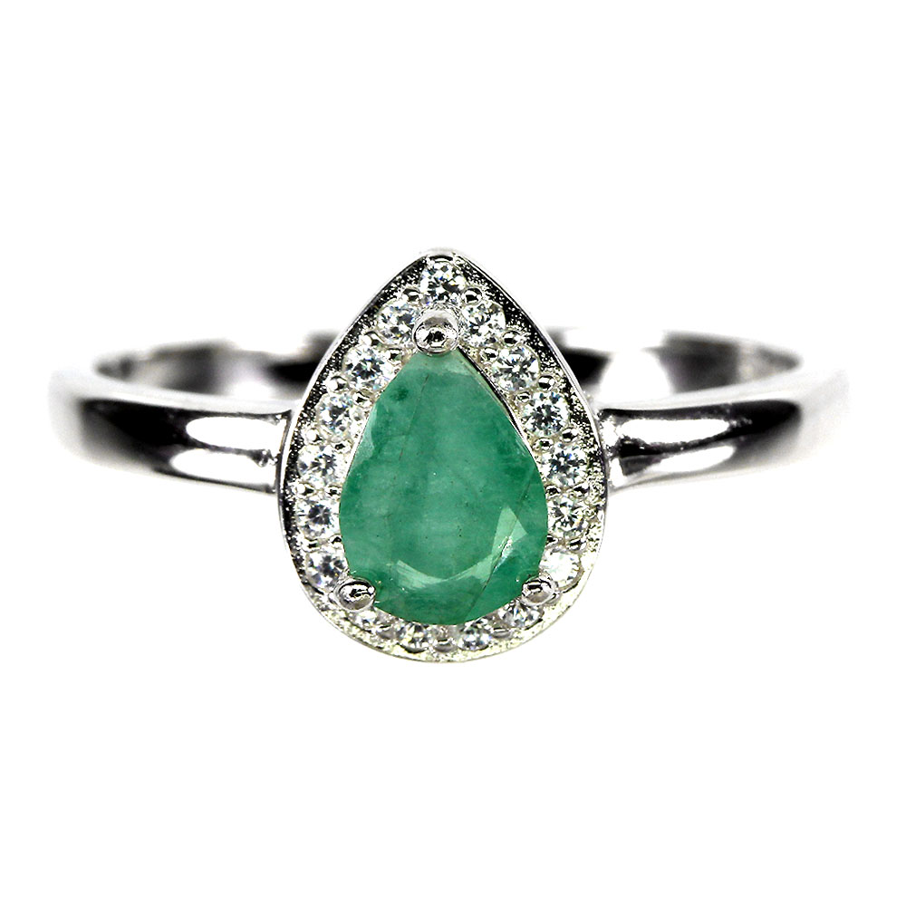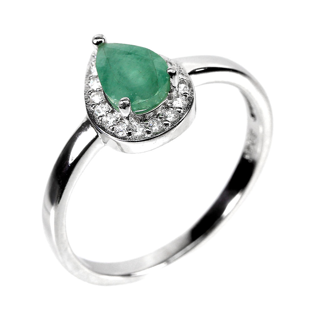 Unheated Pear Green Emerald 7x5mm Simulated Cz 925 Sterling Silver Ring Size 8