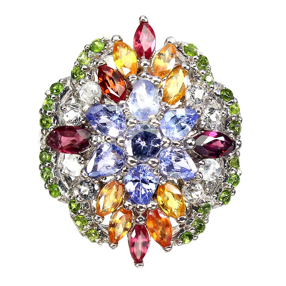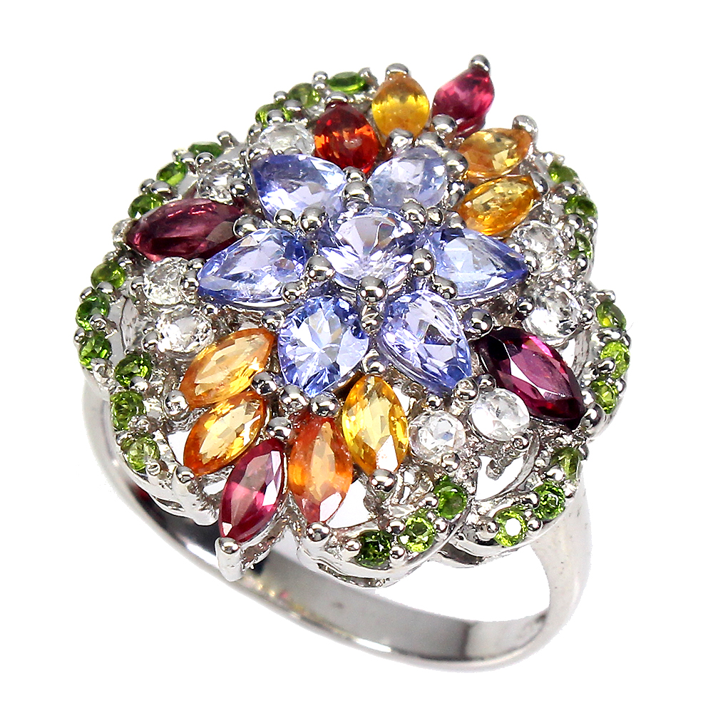 Pear Tanzanite Rhodolite Sapphire White Topaz Gems 925 Sterling Silver Ring Sz 8