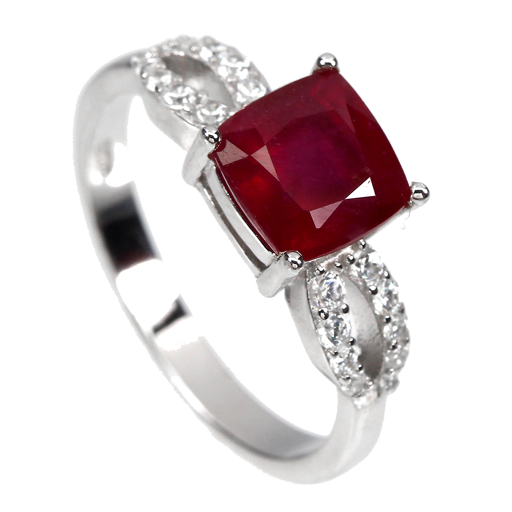 Heated Cushion Ruby 7mm Simulated Cz White Gold Plate 925 Sterling Silver Ring