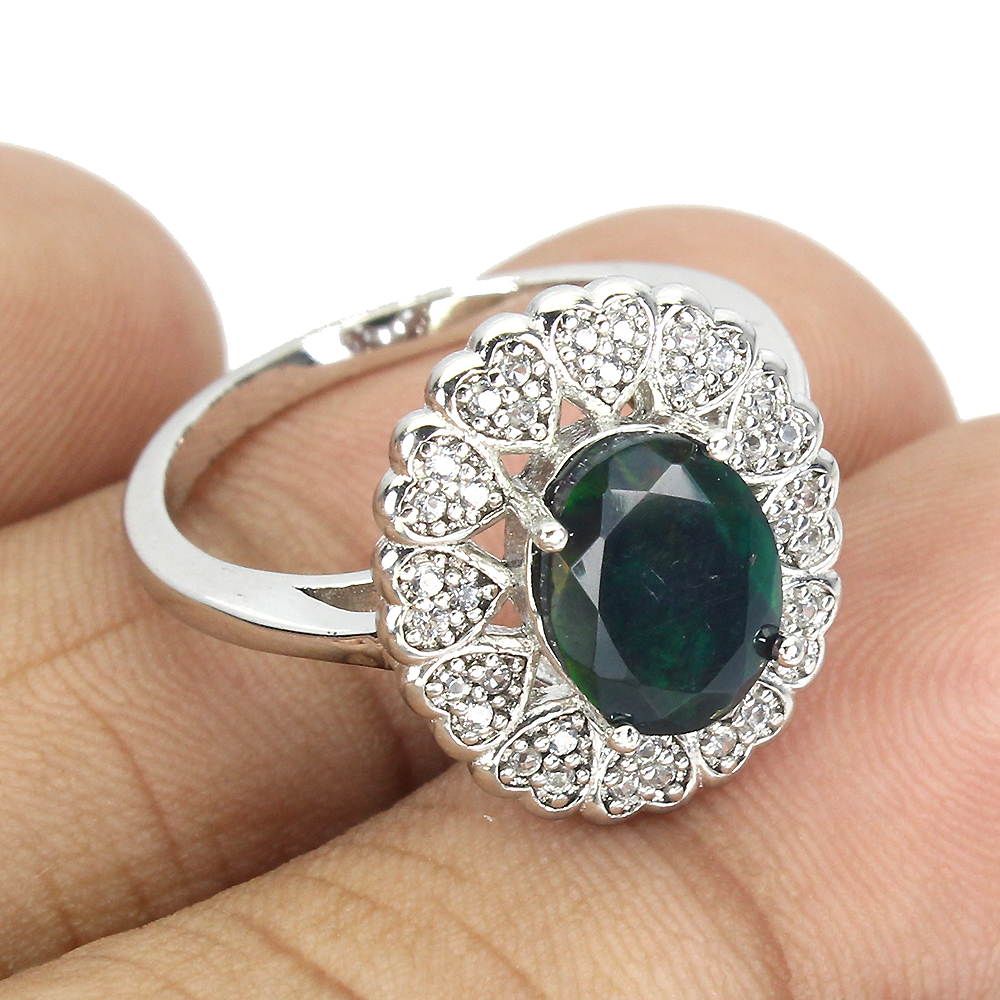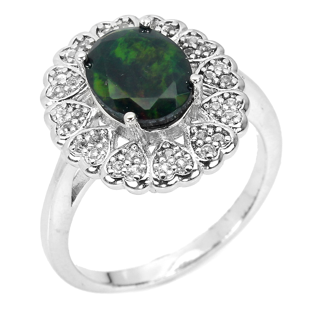 Clarity Enhanced Oval Black Opal 9x7mm White Topaz 925 Sterling Silver Ring 7