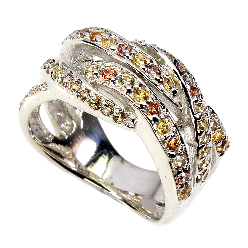 Round Sapphire Multi-Color 14K White Gold Plate 925 Sterling Silver Ring Size 7