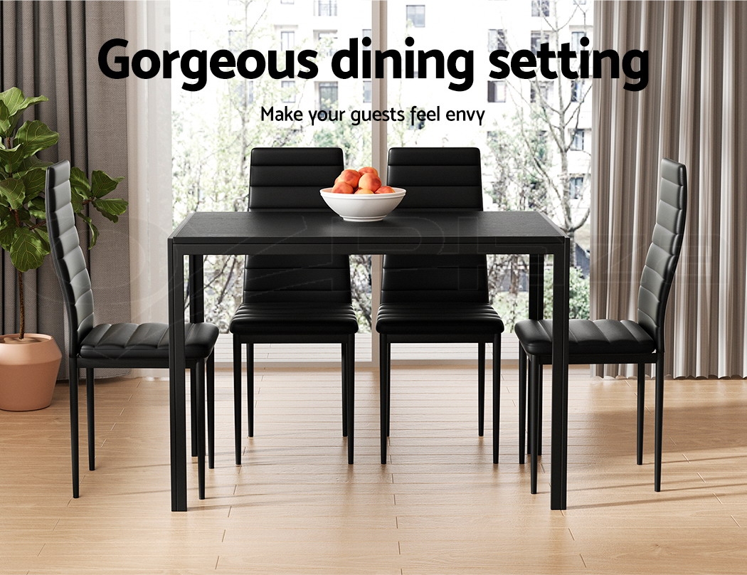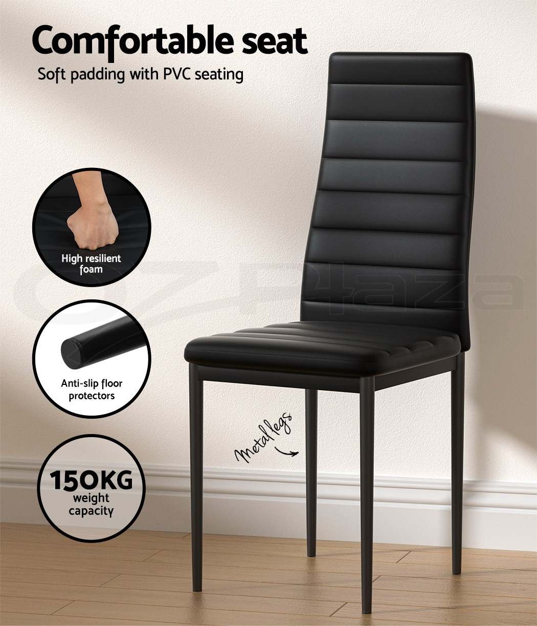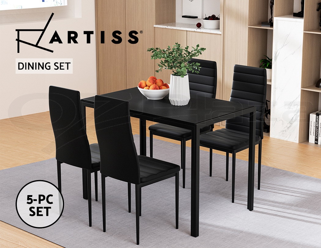Are you after a dining set flaunting stylish and modern design and one that is versatile? You’ll love our Artiss dining set. Made with the highest quality craftsmanship, our beautiful and modernistic Artiss dining set will effortlessly enrich your dining room décor and serve the purpose. Whatever style your home interior reflects, it will blend seamlessly in your space and match your preferred décor. Have a space concern? You can choose from our four-seater or six-seater dining set. Plus, the rectangular-shaped table is of the right size and perfect for your home. Our dining table features 18mm thick natural grain finish MDF top with powder-coated metal tube frame legs. And the dining chairs boast matt finish PVC seats with high resilient foam padding for comfort. It also has anti-slip floor protectors to prevent slipping or floor getting scratched. The dining set is water and wear resistant and comes with durable steel fixings and reinforced installation hardware accessories. This set is easy to maintain and assemble. Bring home our Artiss dining set. It makes an ultimate addition and adds a timeless appeal to your space.