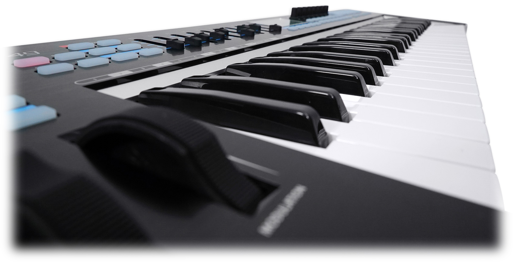 The Graphite 49 is easy to use. With dedicated Transpose and Octave buttons, you can change the key of any given instrument, as well as expand the keyboard to a full 4-octave range, without using any sub menus or shift keys. With all of these comprehensive features, not to mention classic Pitch Bend and Modulation wheels, the Graphite 49 puts a wide range of musical expression and tone manipulation at your fingertips.