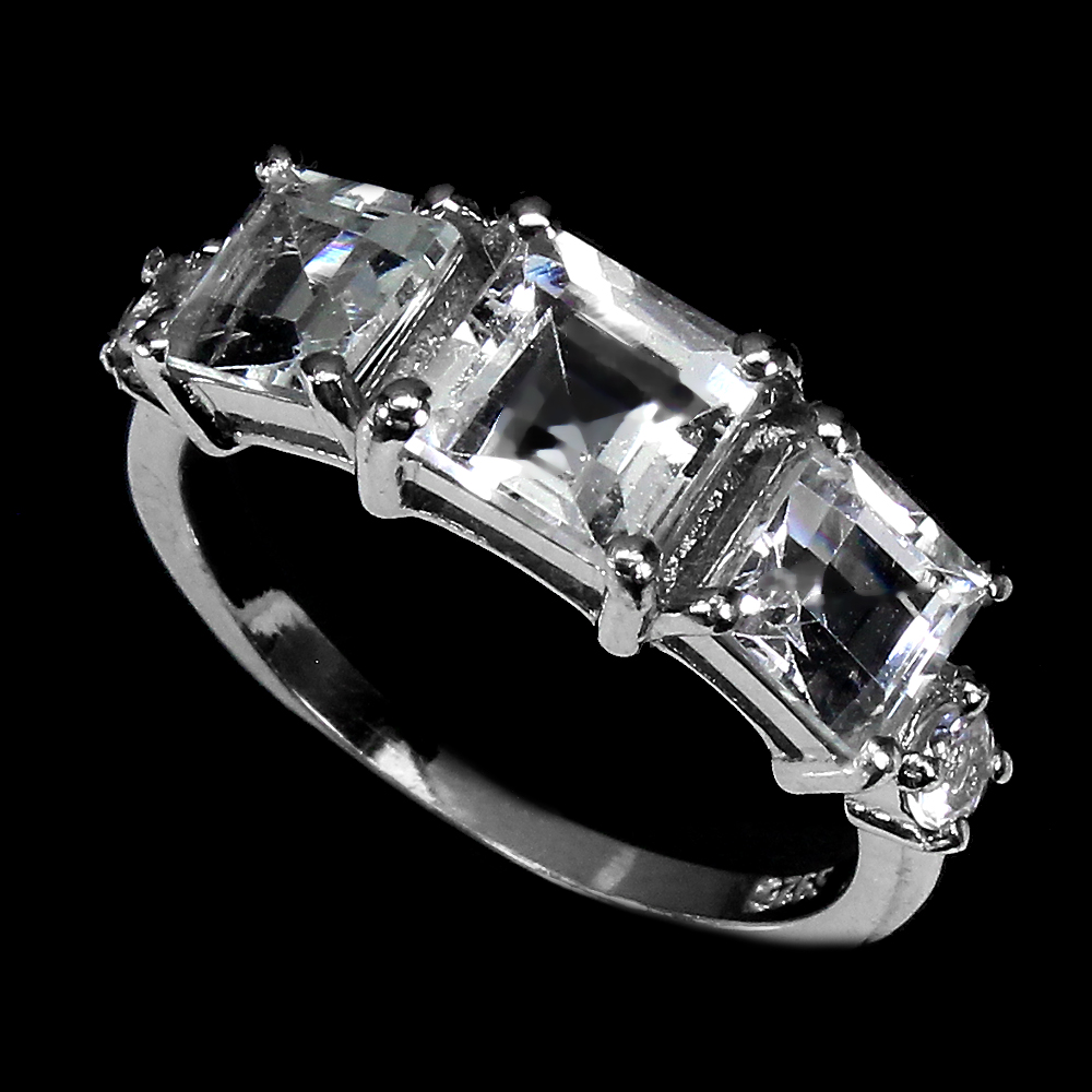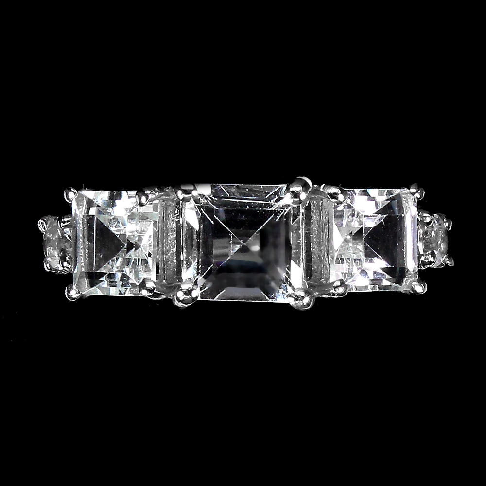 Unheated Square Aquamarine 6x6mm White Gold Plate 925 Sterling Silver Ring